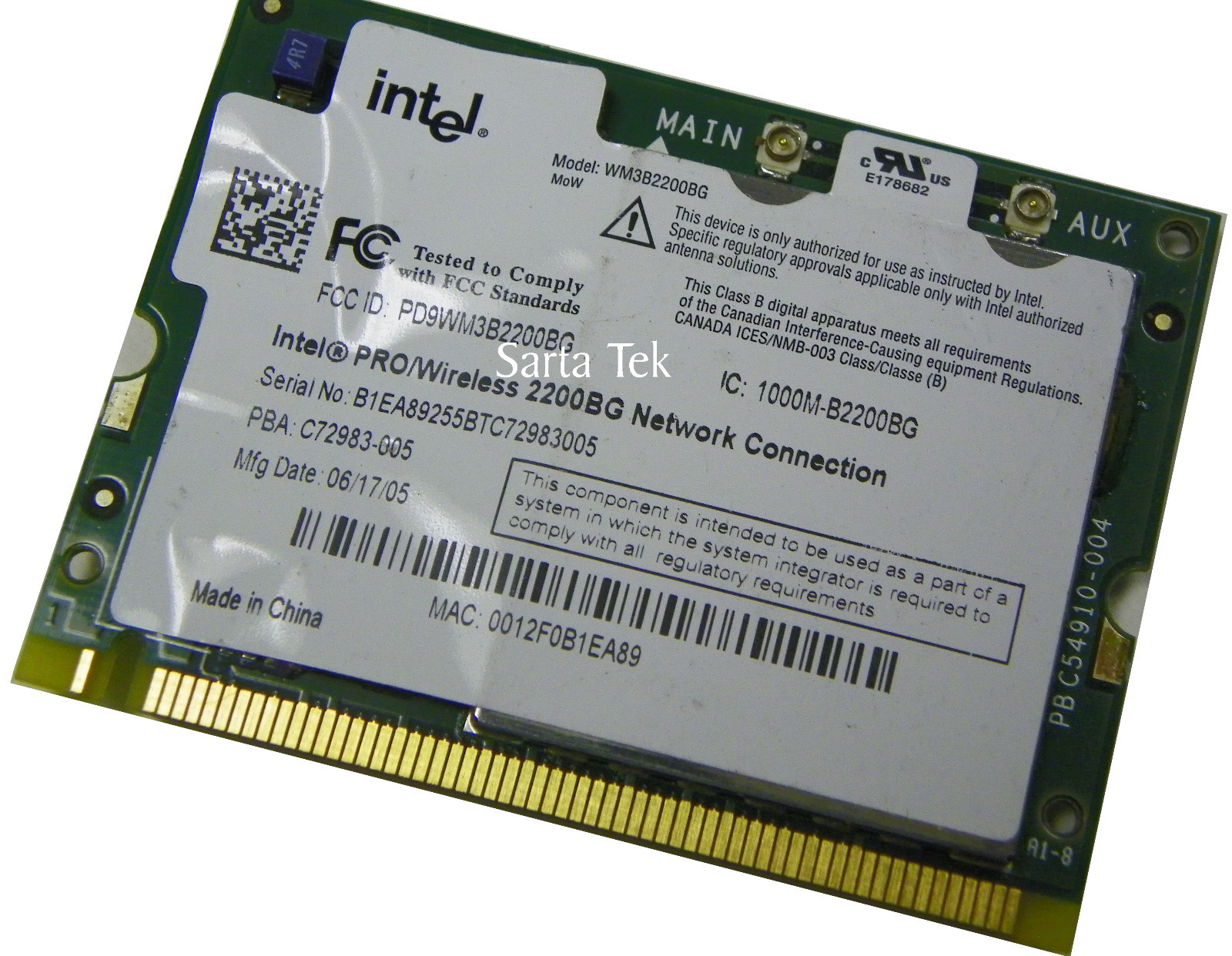как выглядит Intel PRO/Wireless 2200BG Network Connection Mini PCI Wireless WM3B2200BG фото