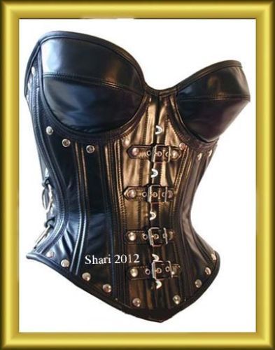 как выглядит Women UndeBust Corset In Black Leather steel Boned waist trainer corset фото