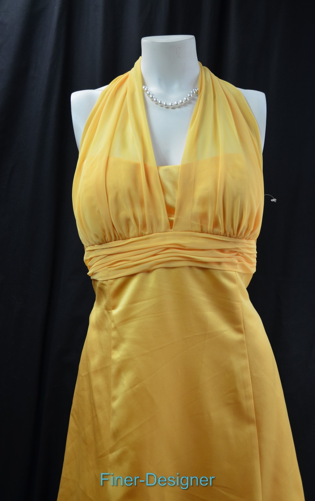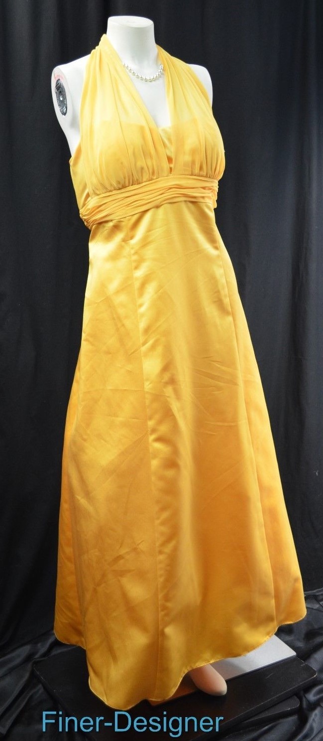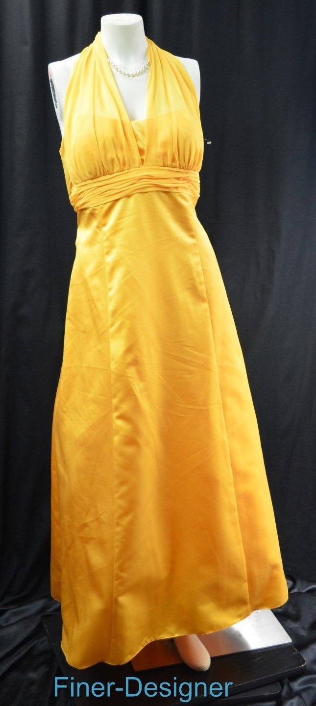 David's Bridal Satin Empire 81441 Ball Gown Illusion chiffon Halter dress 16 NEW