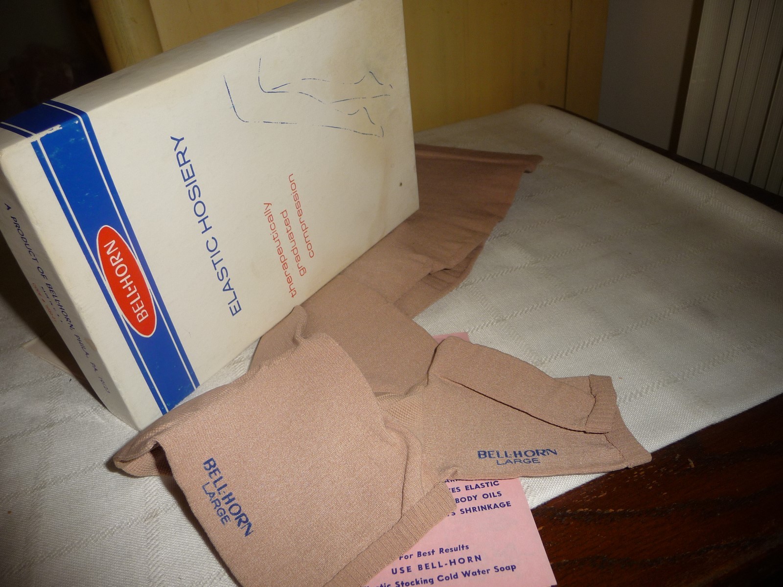 vtg support stockings sz Large BELL-HOR beige ELASTIC STOCKINGS knee hi UNUSED