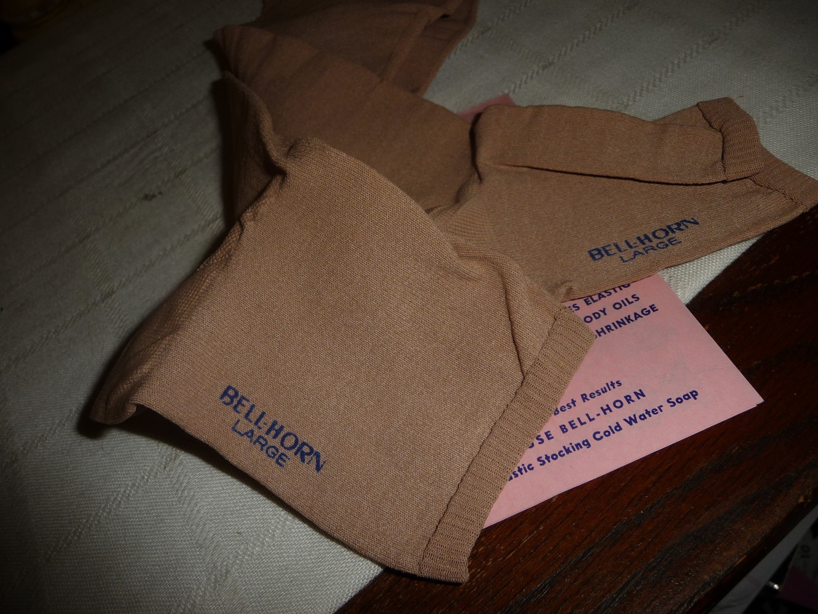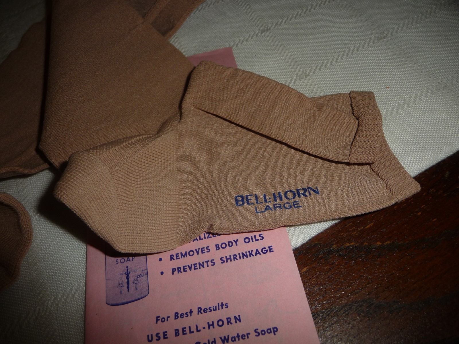 как выглядит vtg support stockings sz Large BELL-HOR beige ELASTIC STOCKINGS knee hi UNUSED фото