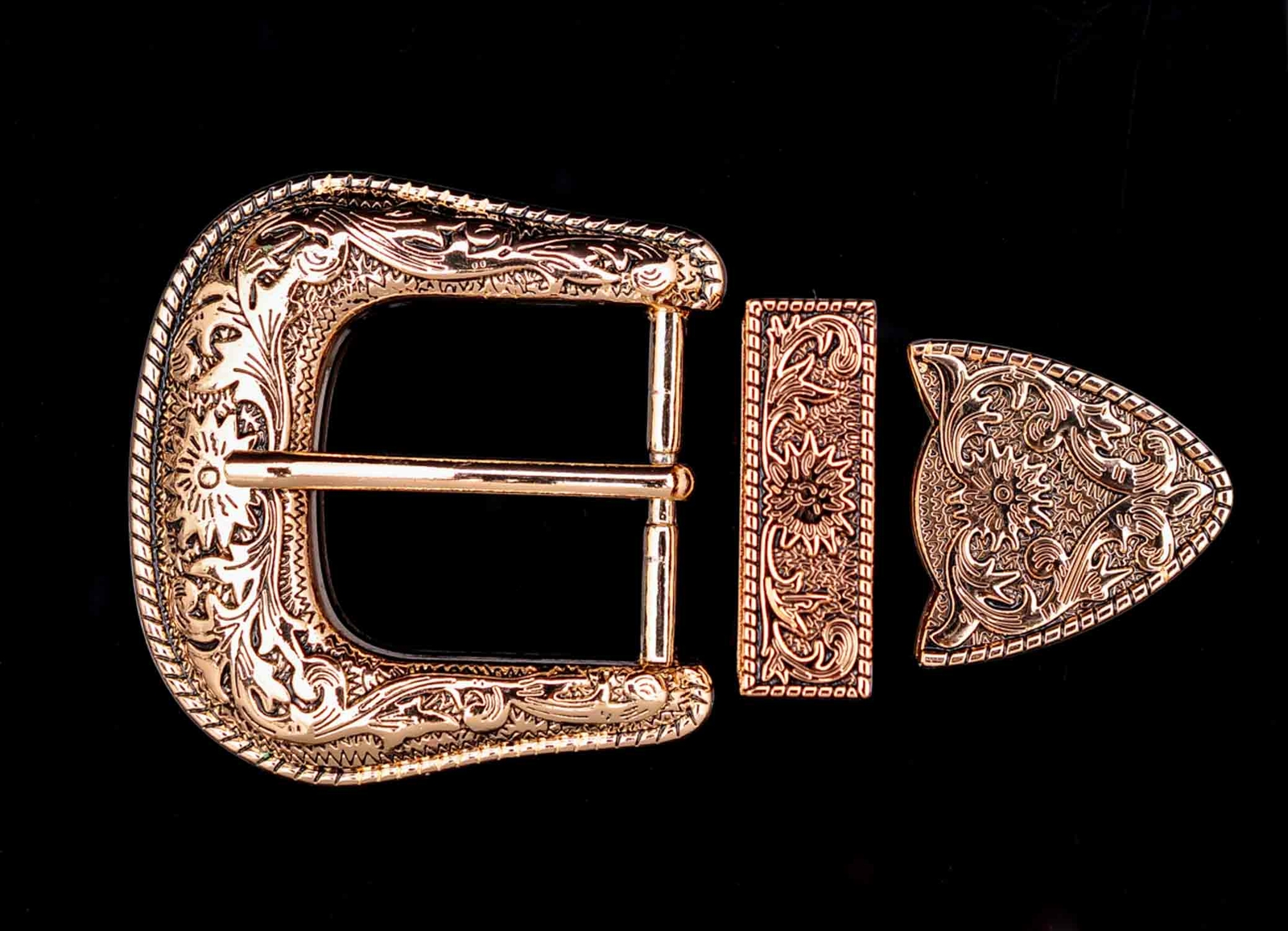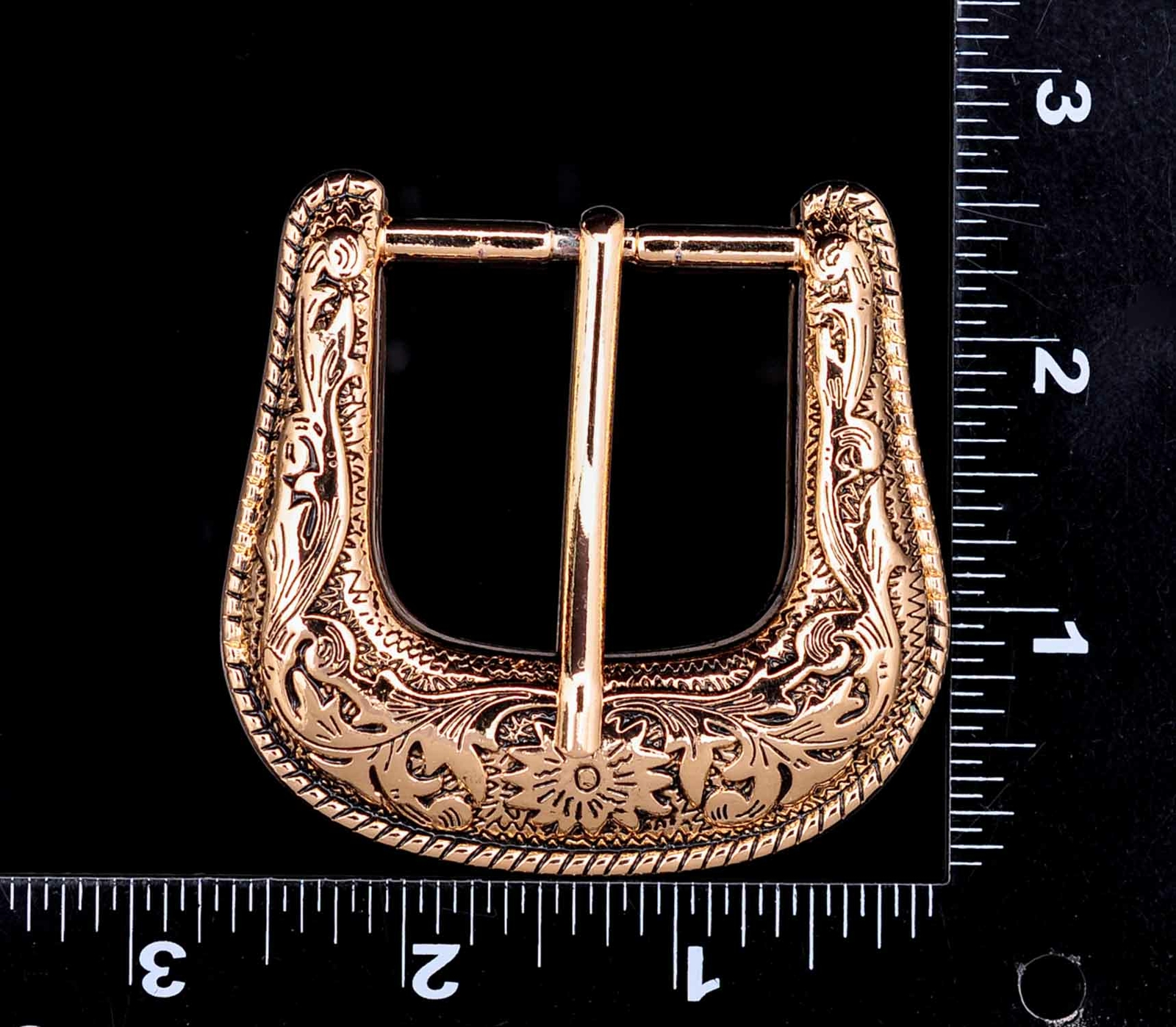 Gold Western Floral Engraved Cowboy Belt Buckle Three Piece Set Unisex 1-1/2
