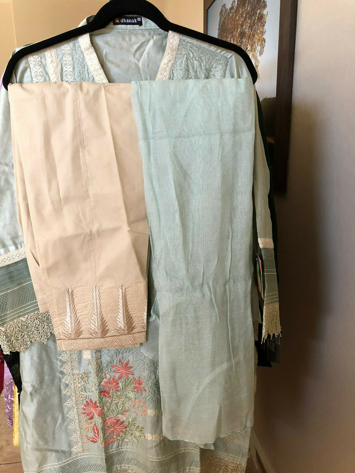 как выглядит Beautiful Dhanak Embroidered Shirt with dupatta and trouser фото