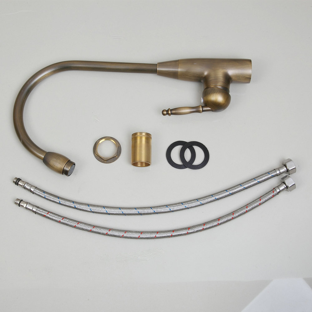 360 Swivel Spout Kitchen Basin Mixer Taps Antique Brass Deck Mounted Sink Faucet