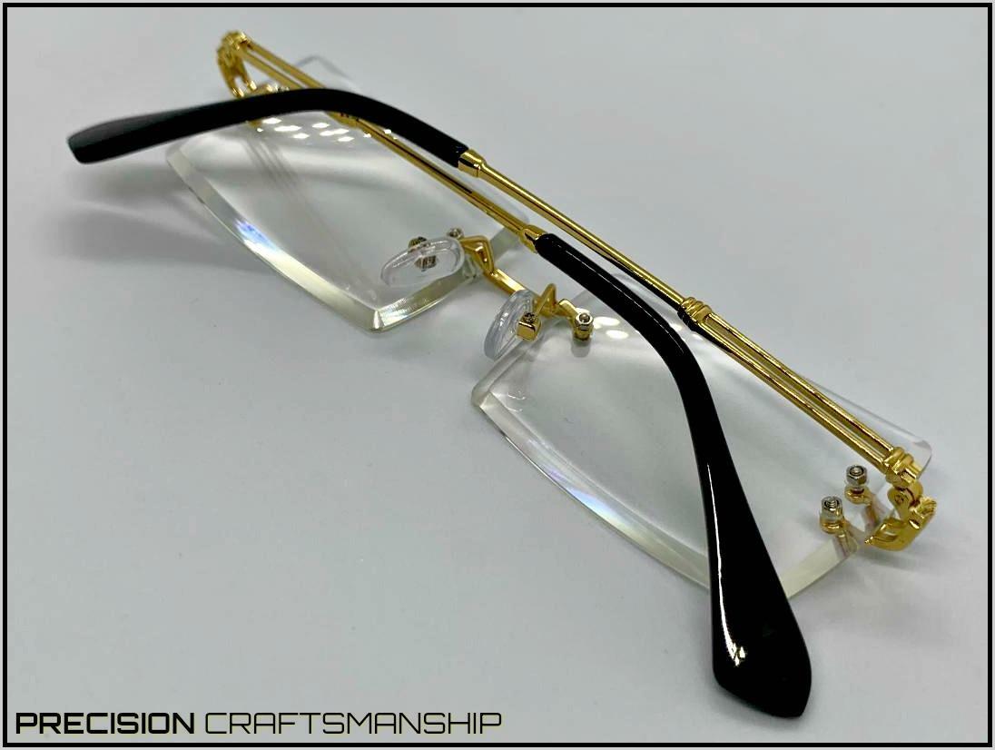 Mens Classy Sophisticated Contemporary Clear Lens EYE GLASSES Rimless Gold Frame