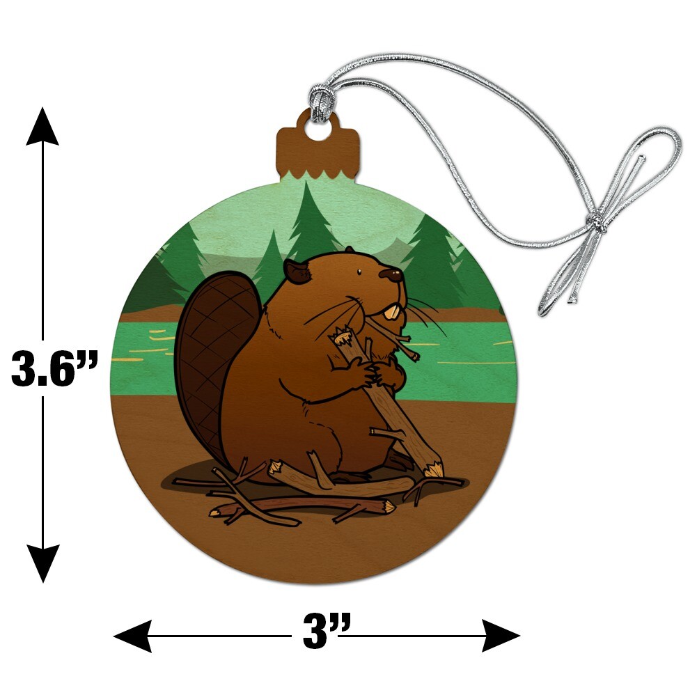 как выглядит Beaver Chomping Wood Wood Christmas Tree Holiday Ornament фото