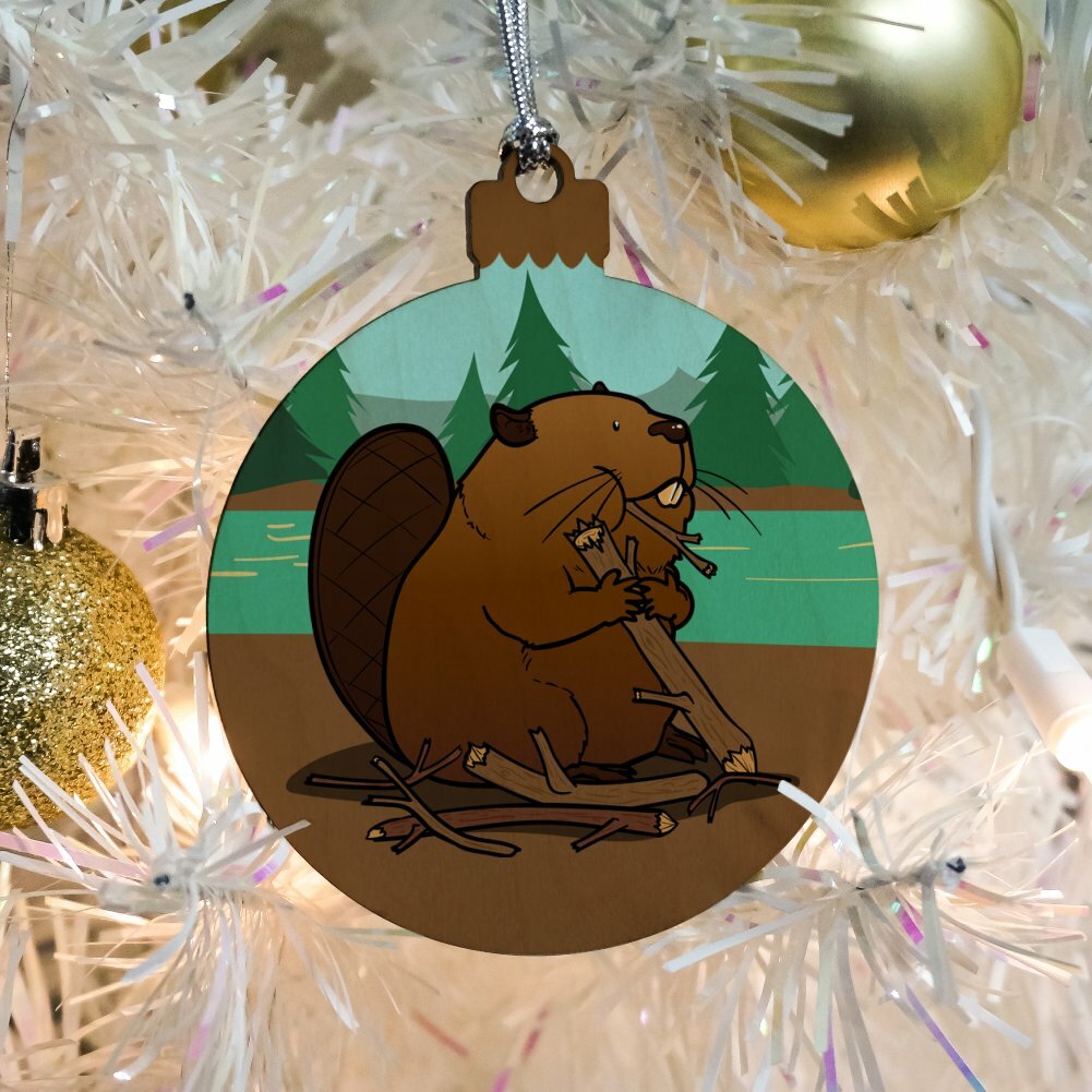 Beaver Chomping Wood Wood Christmas Tree Holiday Ornament