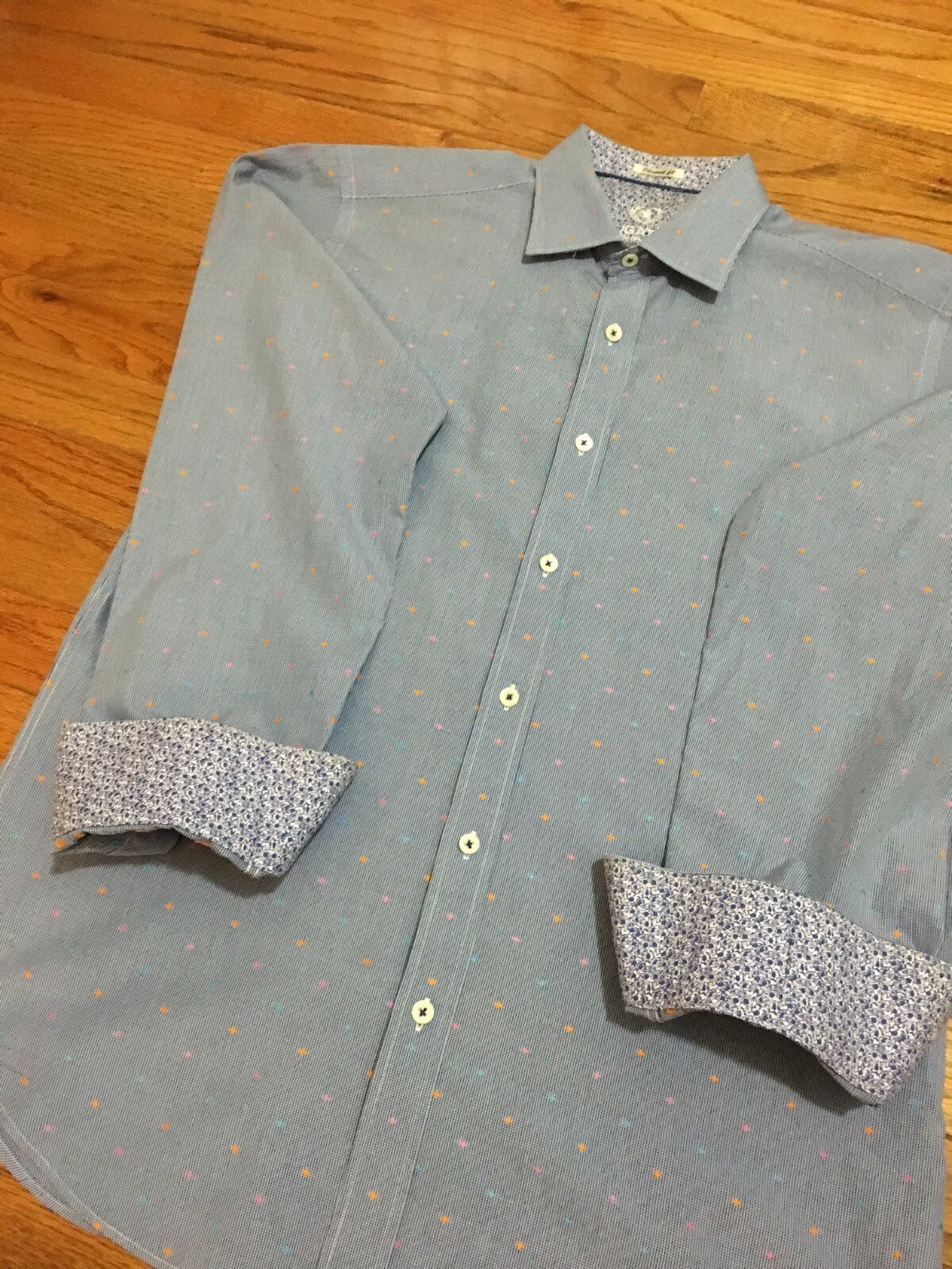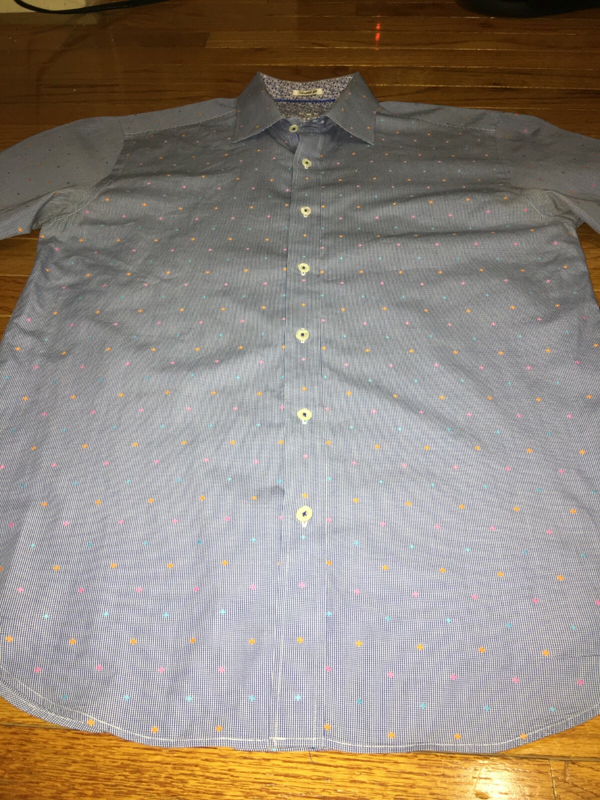 как выглядит BUGATCHI UOMO Blue Multi Colored Polka Dot Long Sleeve Button Shirt Men Sz L фото