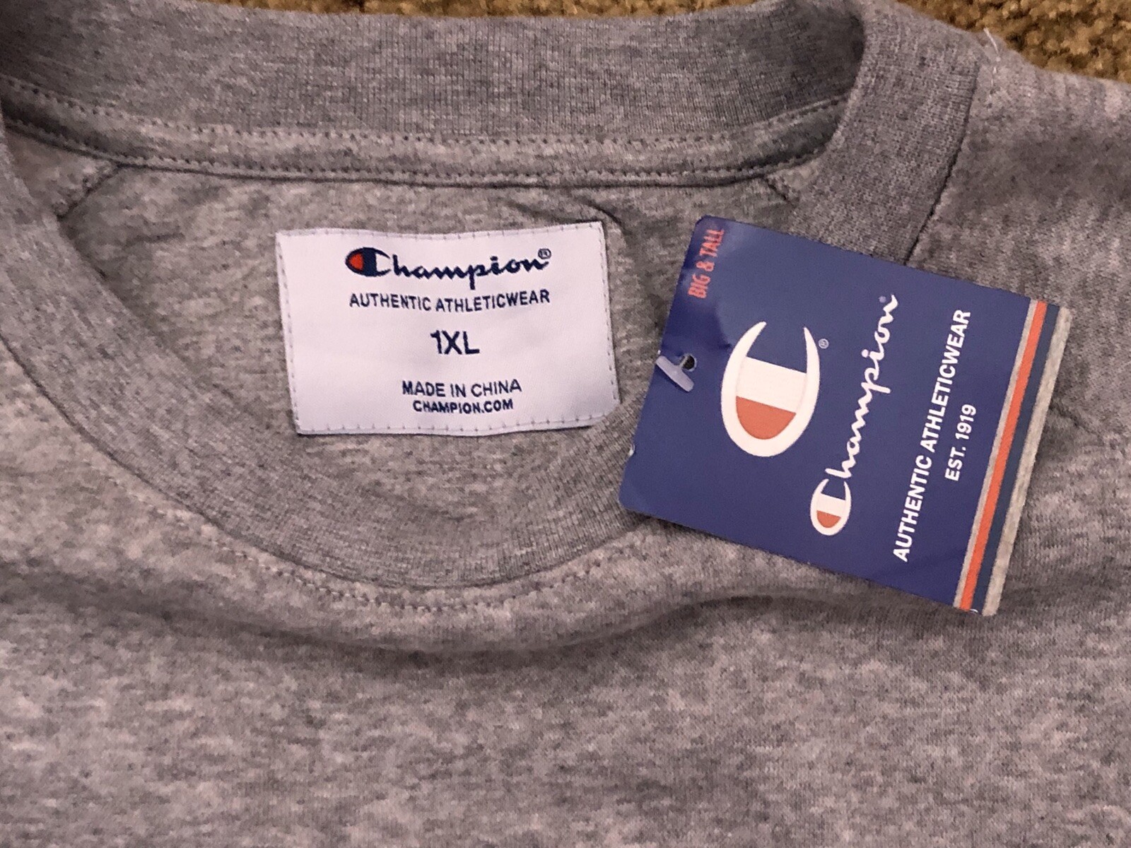 как выглядит Men s Champion Powerblend Colorblock Crewneck Outline Logo Sz 1XL фото