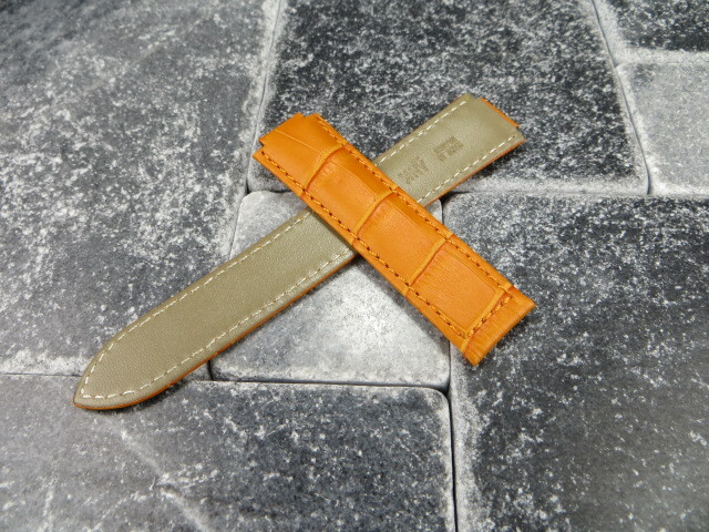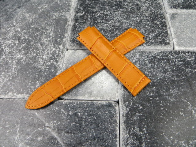 New 20mm Leather Strap Orange Watch Band CARTIER Ballon Bleu Single Fold Large