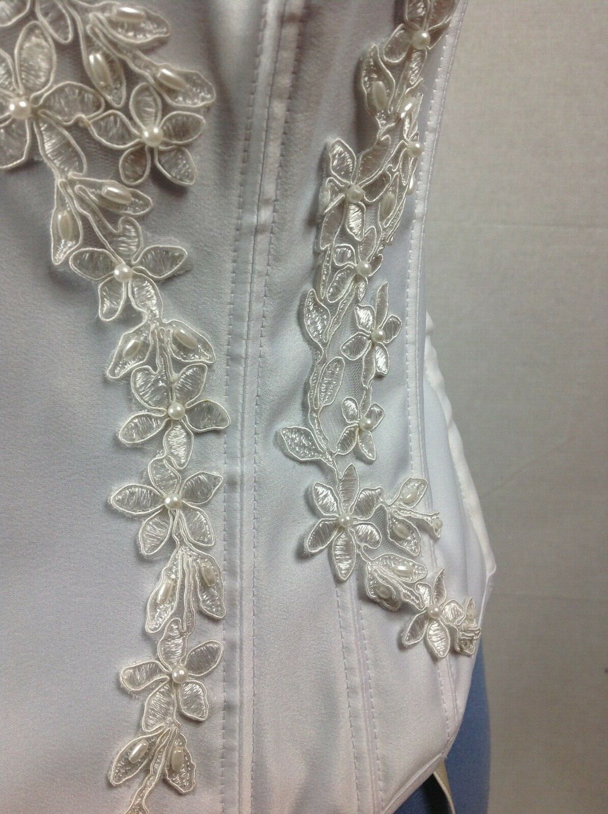 Corset Shirley of Hollywood White Satin Beaded Bustier 34,36,38