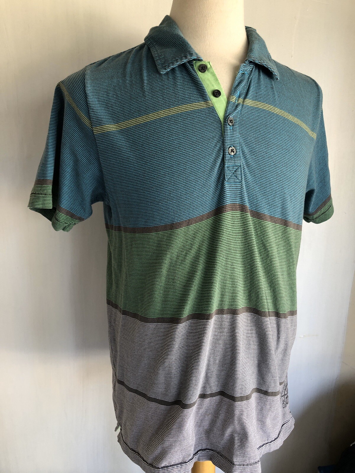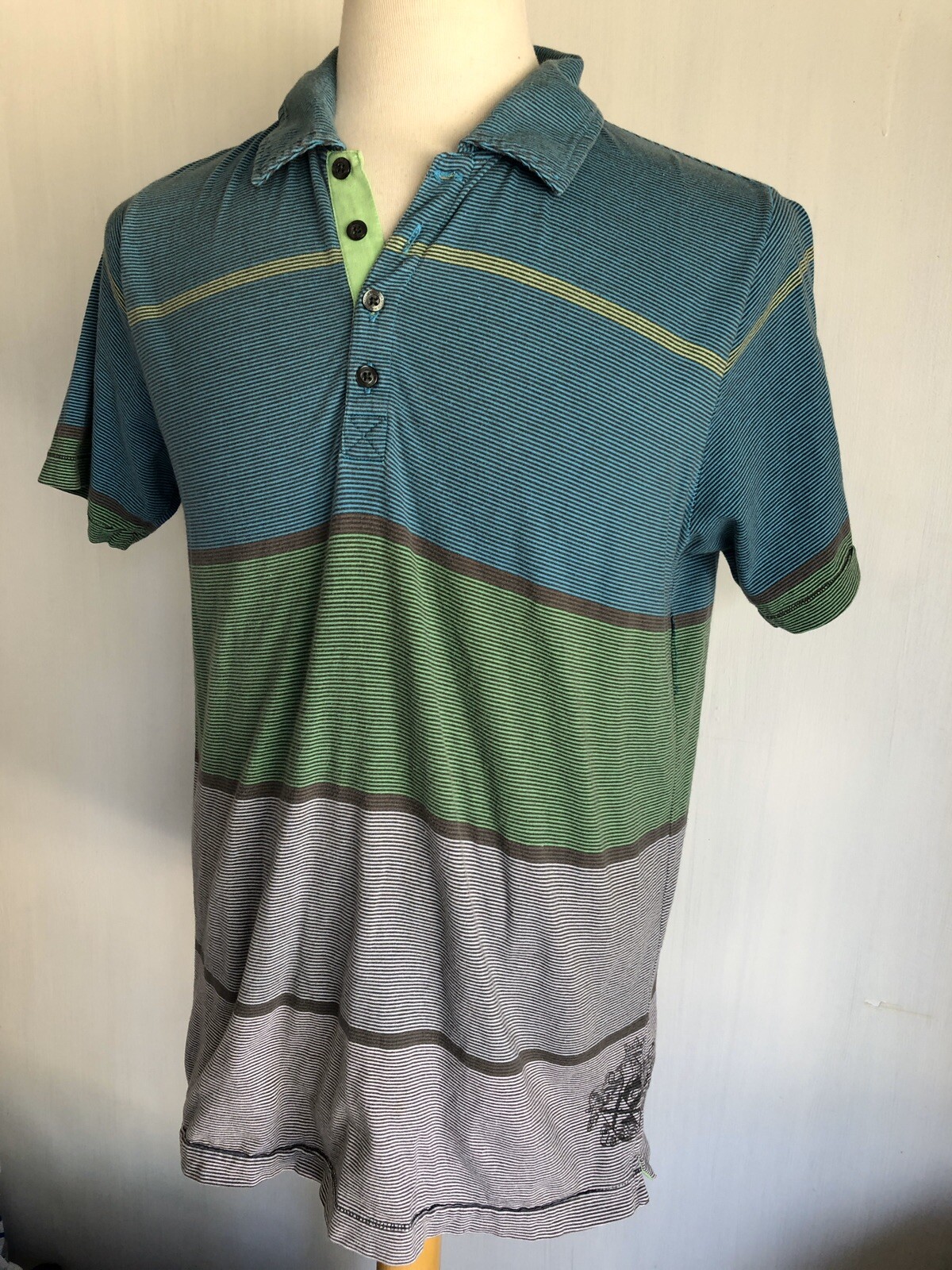 QUIKSILVER Official Multicolor Men's Striped Polo Shirt Size Medium
