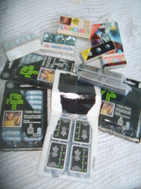 HUGE MIXED LOT VINTAGE CAMERA FLASHES Flip Flash II 52 Blue Dot Cubes 56 NOS