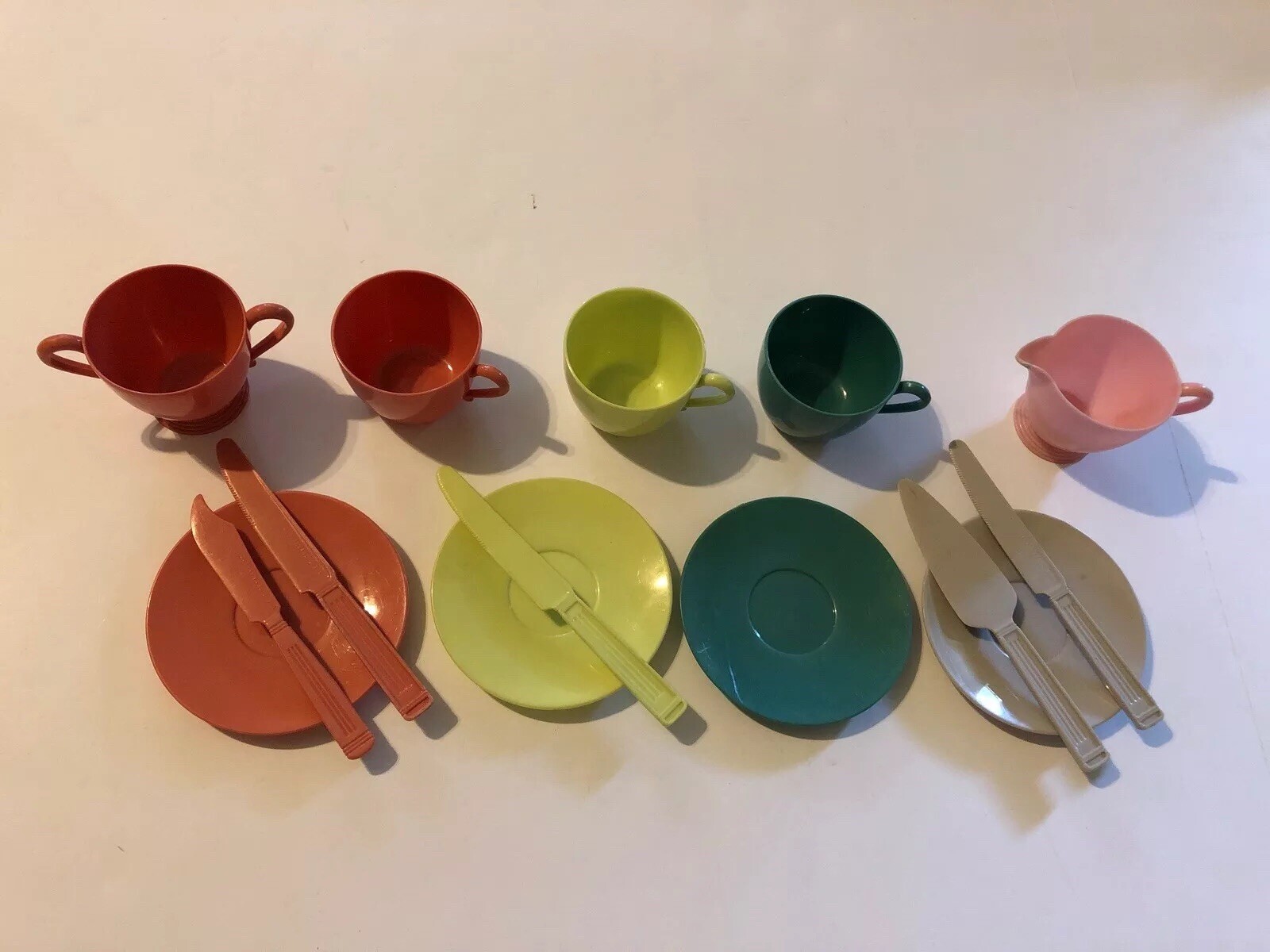 как выглядит Vintage Gothamware Plastic Play Dishes and Utensils Set Extras 1960s 23 Pc Toy фото