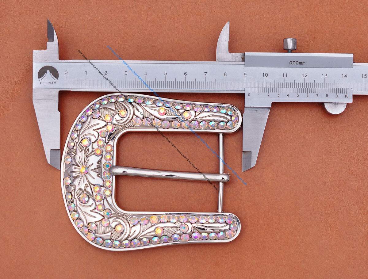 Huge Big Western Cowboy Rhinestone 3 PCS Set Leather Belt Buckle Fit 40mm Strap