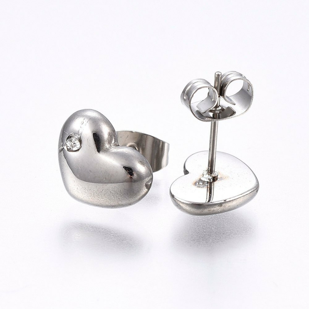 Stainless Steel Set Stud Earrings Pendant Necklaces Heart Gold Silver 17.7 P681