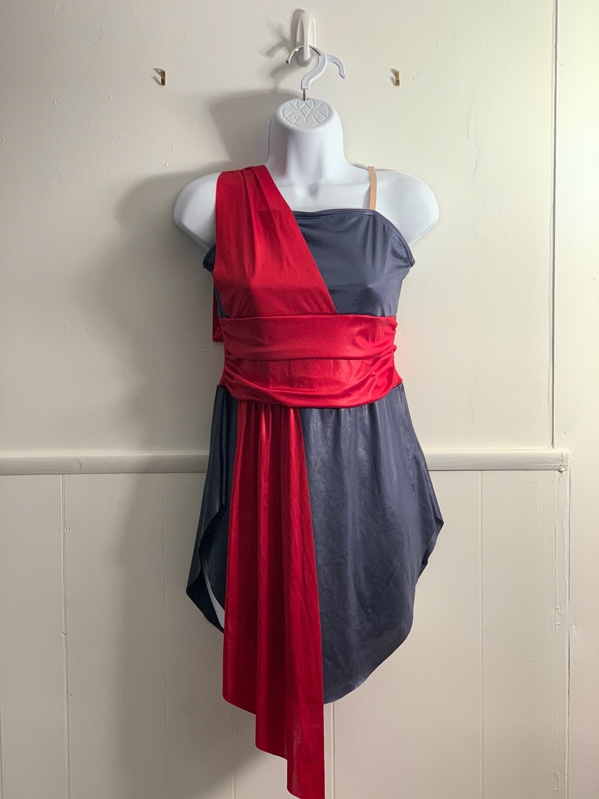Dance Costume Adult Small Red Grey Dress Curtain Call