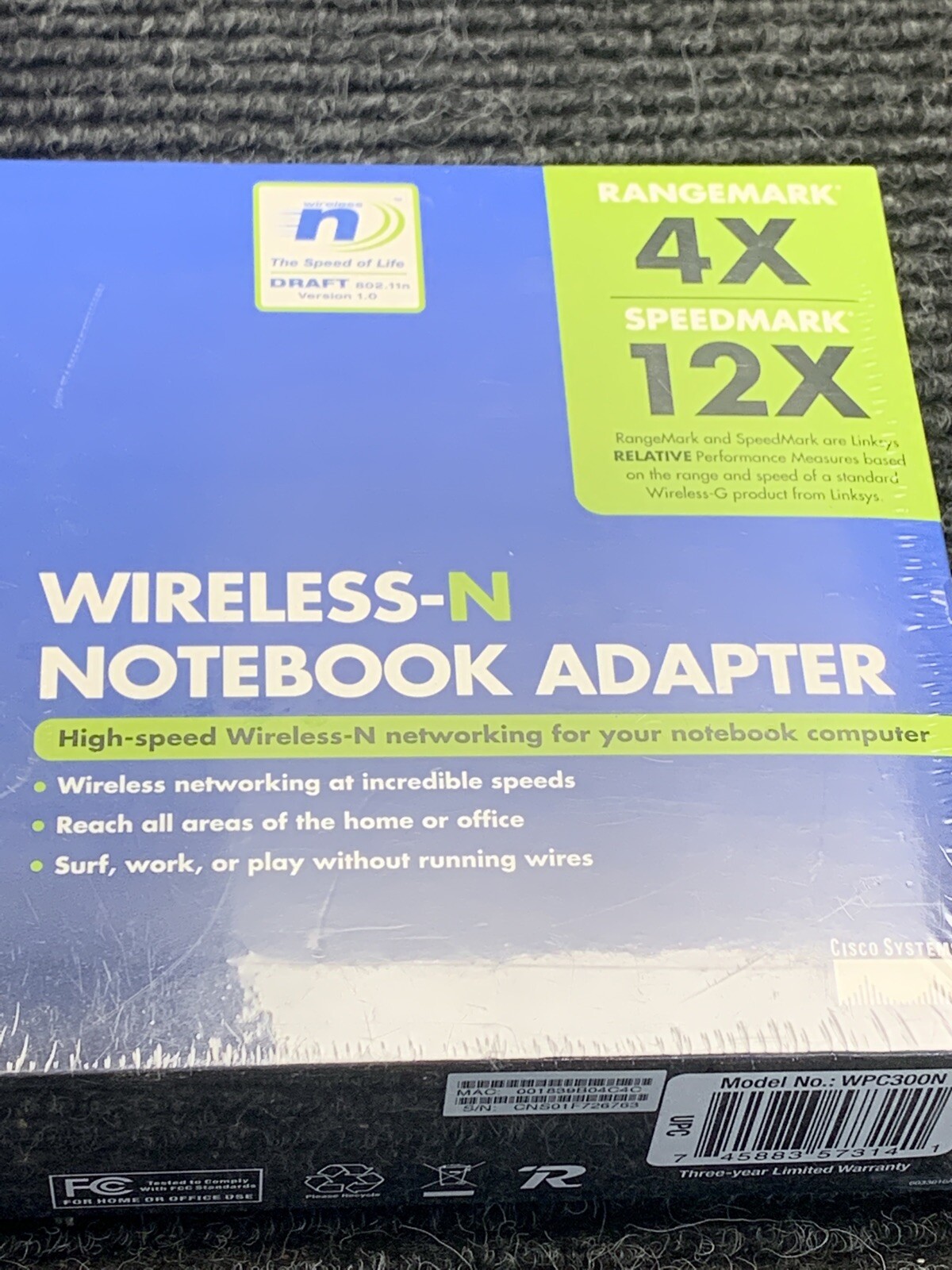 Linksys Wireless-N Notebook Adapter WPC300N Range 4X Speed 12X New sealed box