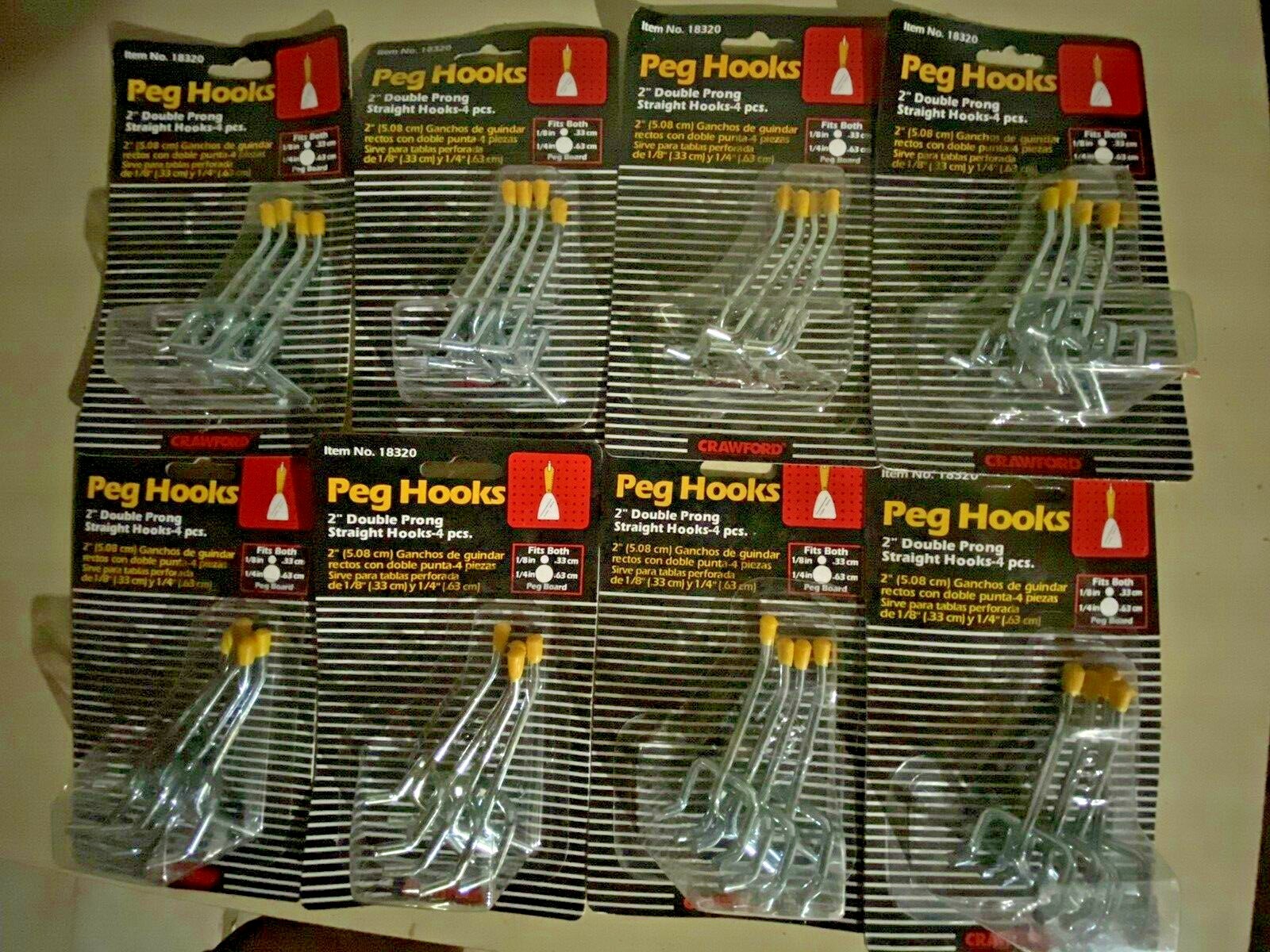 32 pc Crawford 2 STRAIGHT HOOK Double Prong Peg Boards Tools 8pks of 4 NEW saw