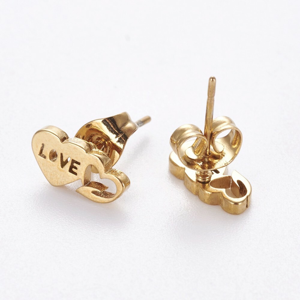 Stainless Steel Set Earring Pendant Necklace Double Heart Valentine Day P786