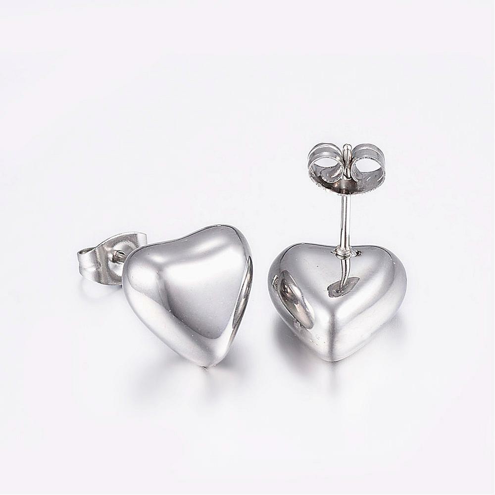 Stainless Steel Pendant Necklace Stud Earrings Set Heart Silver 18 P805