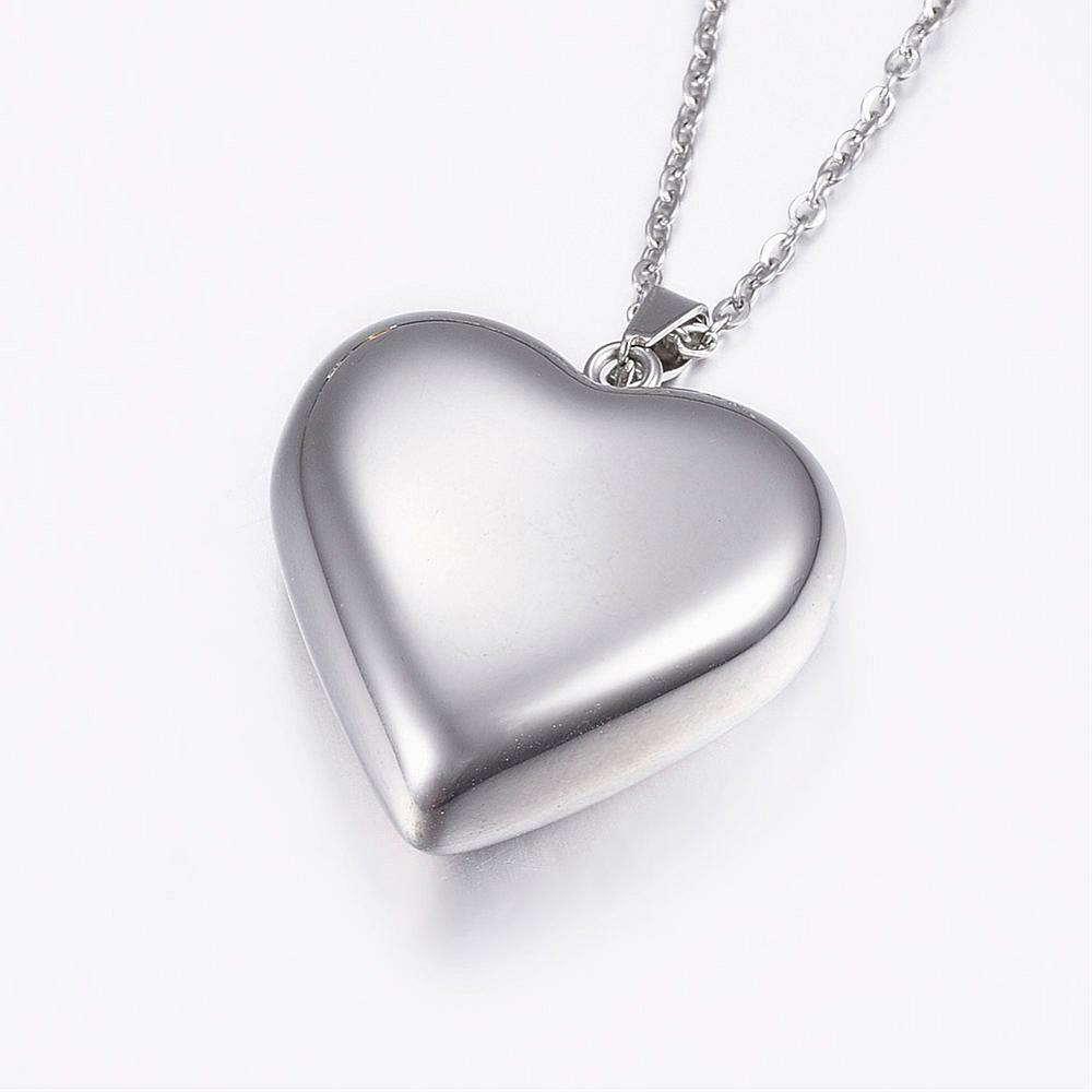 как выглядит Stainless Steel Pendant Necklace Stud Earrings Set Heart Silver 18" P805 фото