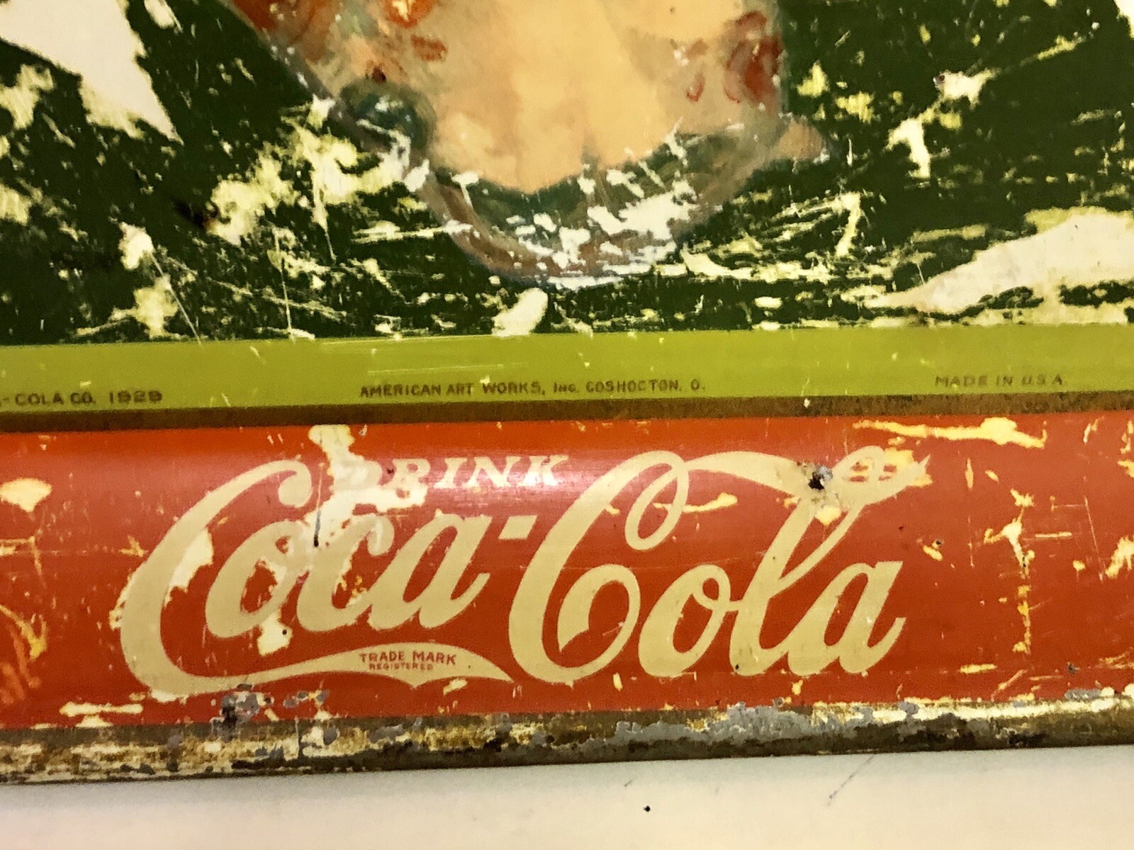 как выглядит 1929 Coca Cola Yellow Swim Suit Metal Tray American Art Works Coshocton Ohio фото