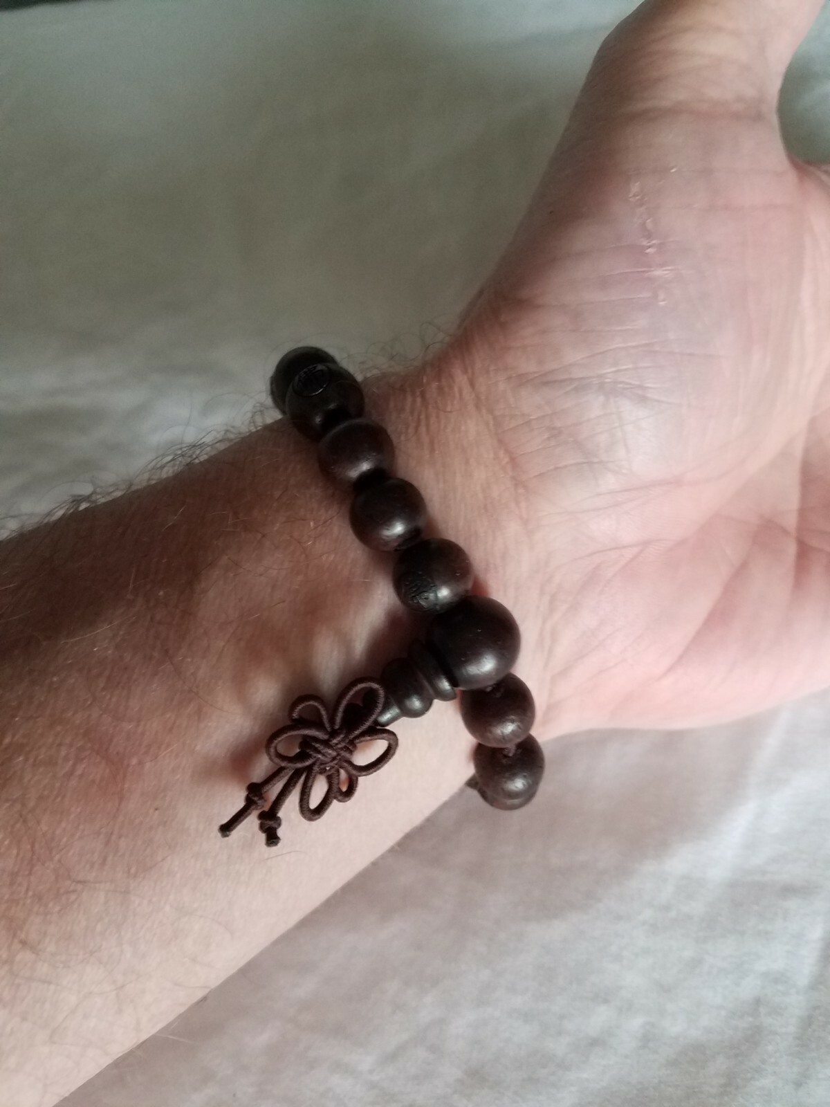 как выглядит Cedar Wood Buddha Bead Bracelet with Fancy Knot фото