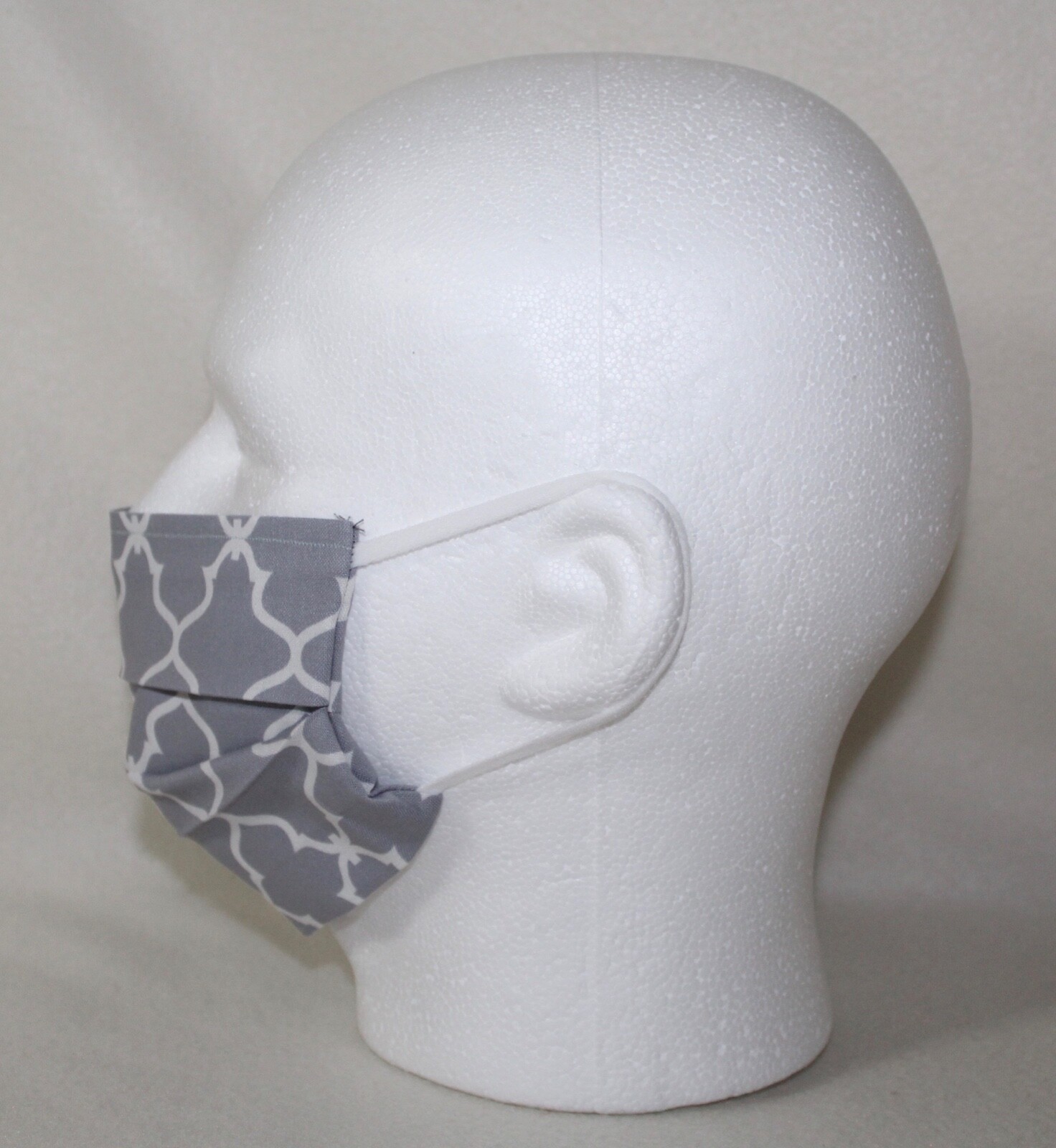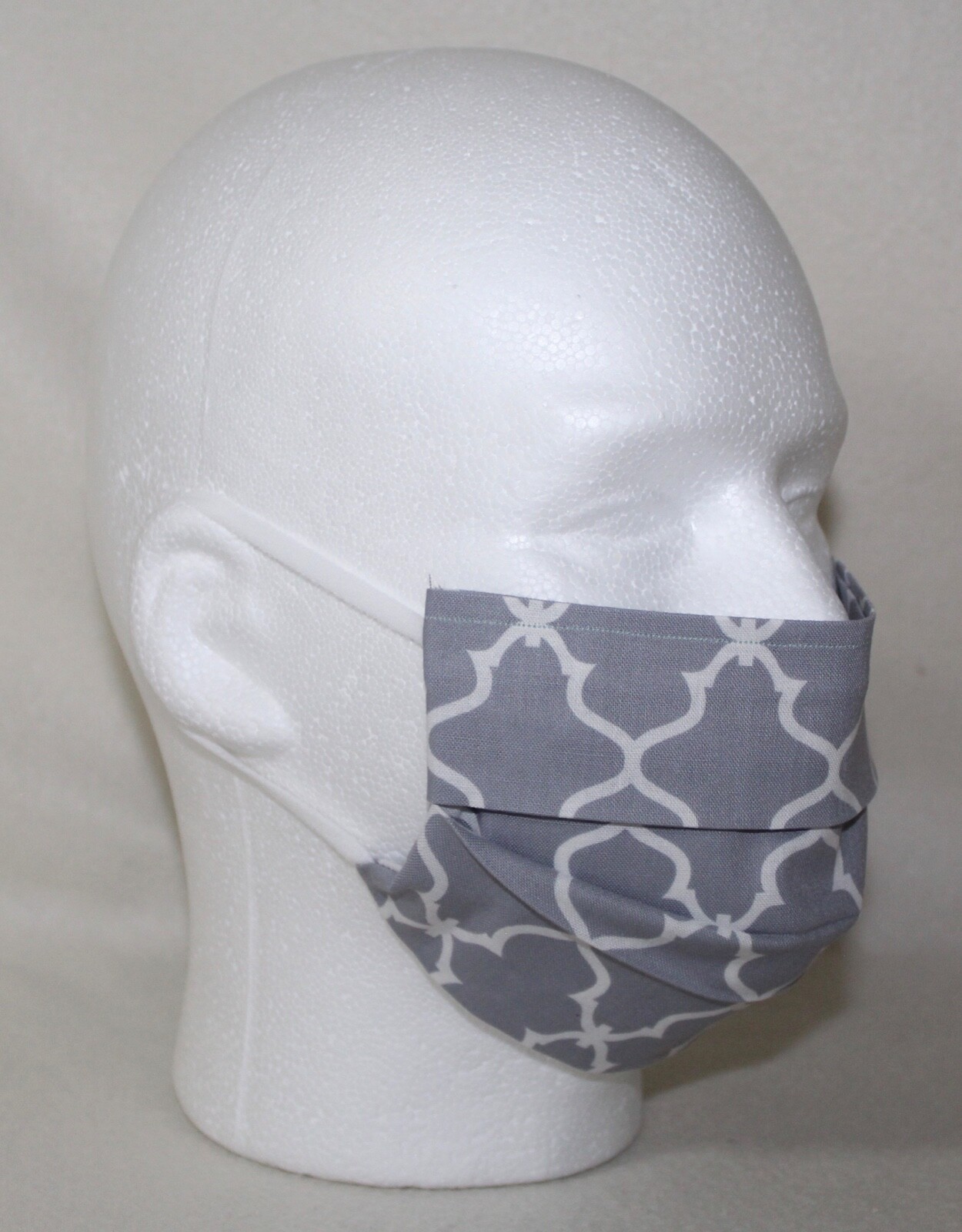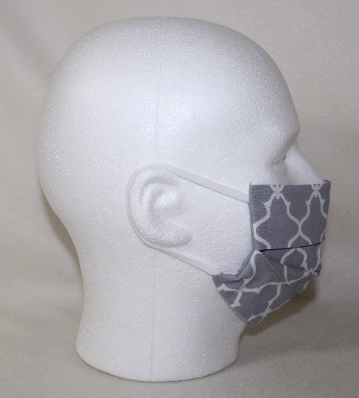 Grey White Reusable Face Mask W/Pocket Adult Large Handmade