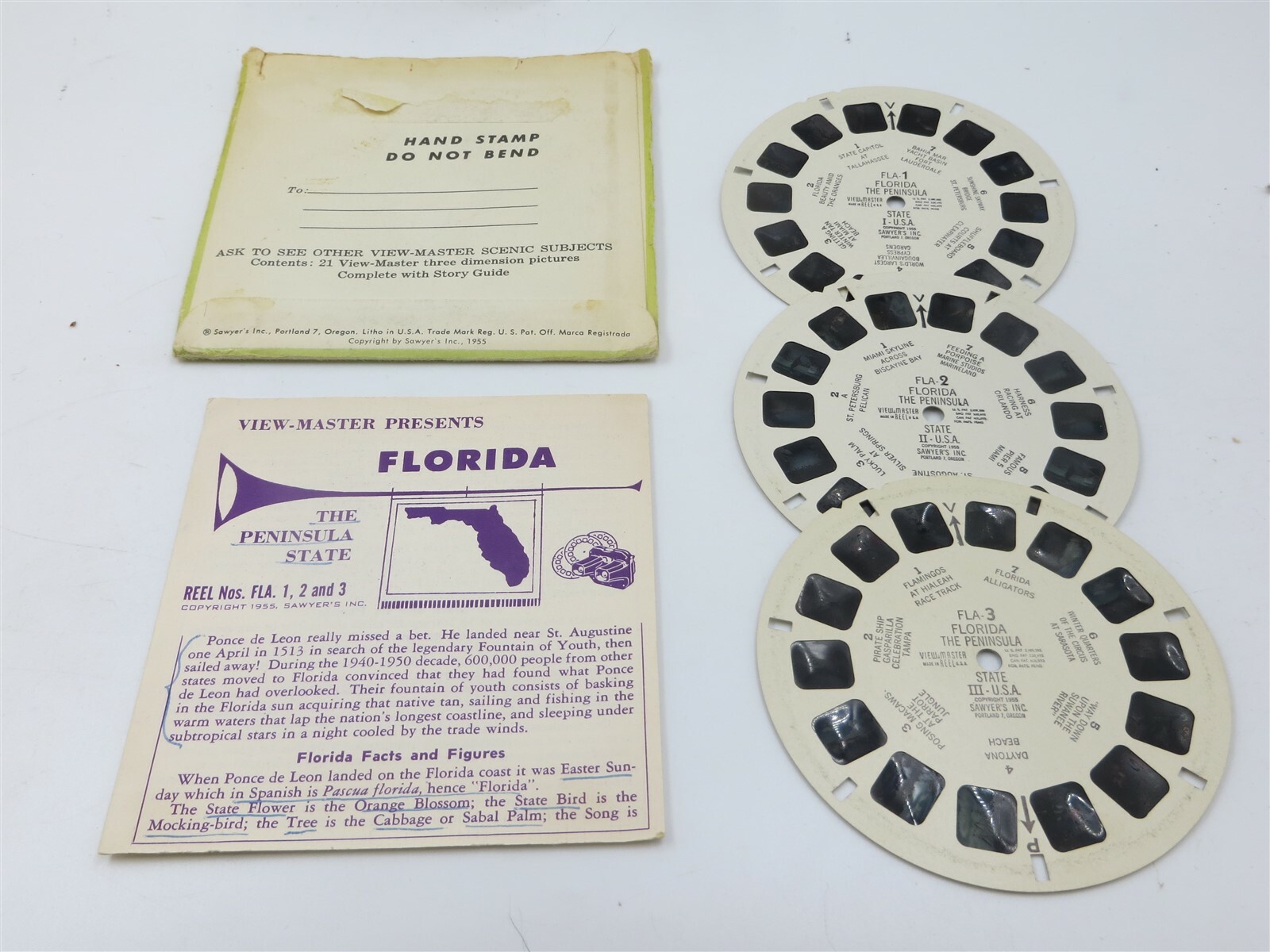 View-Master FLA-1-2-3, Florida, 1954 Vintage S3 Package, 3 Reel Set