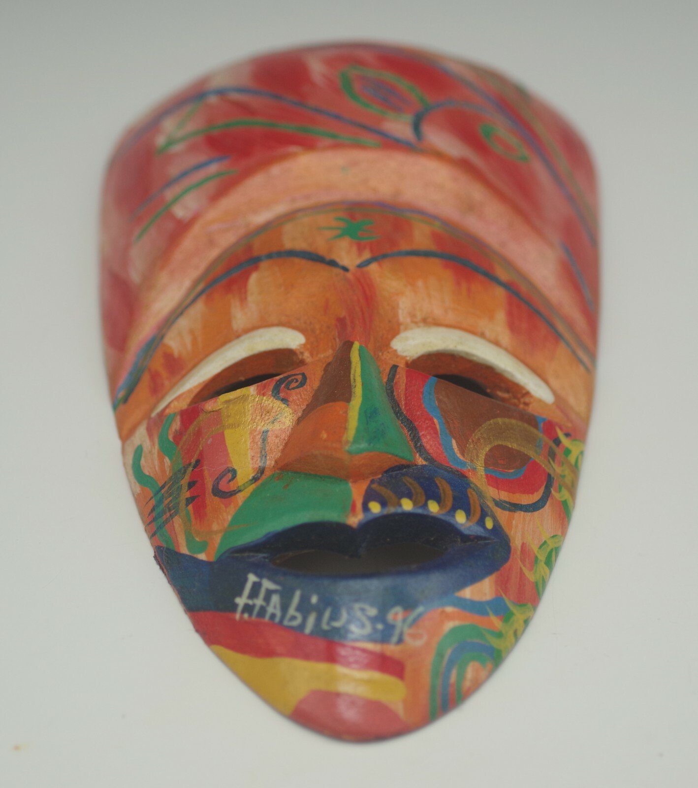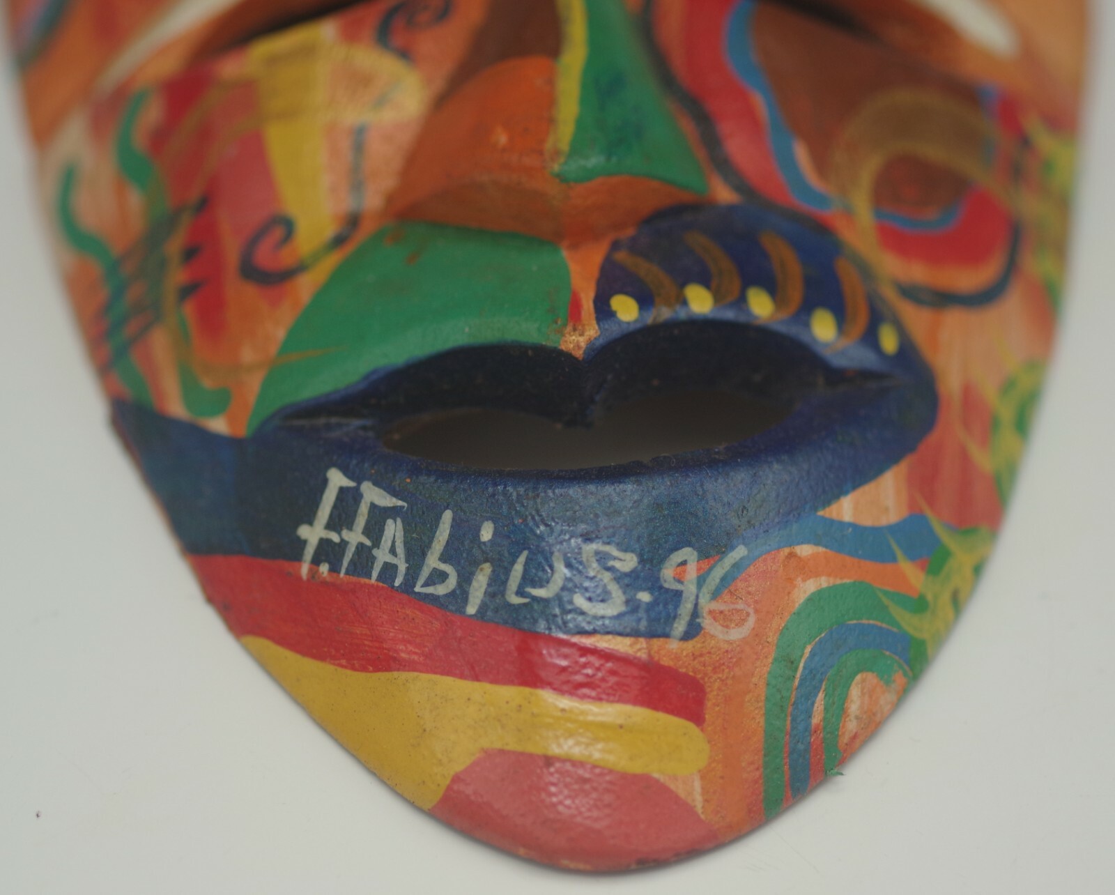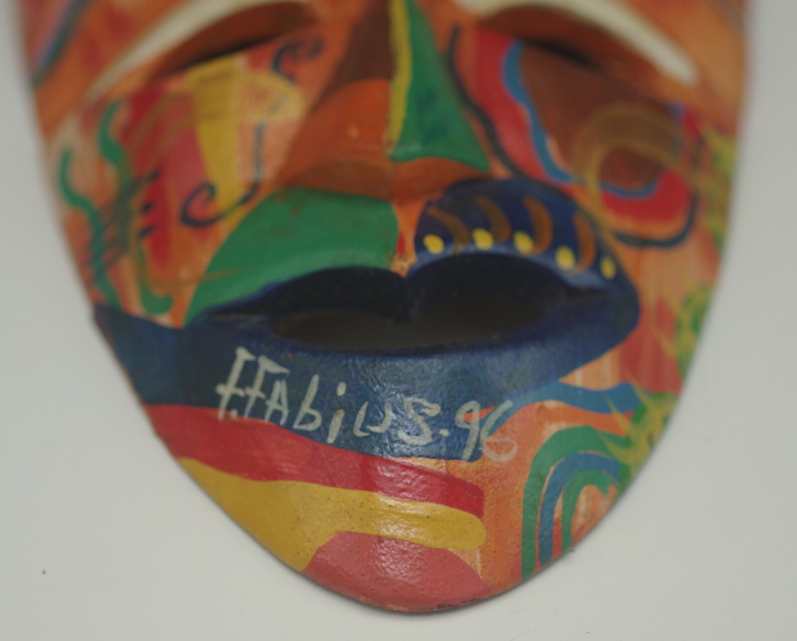 F.FABIUS 1996 HAND PAINTED MARDI GRAS HAND CARVED MASK