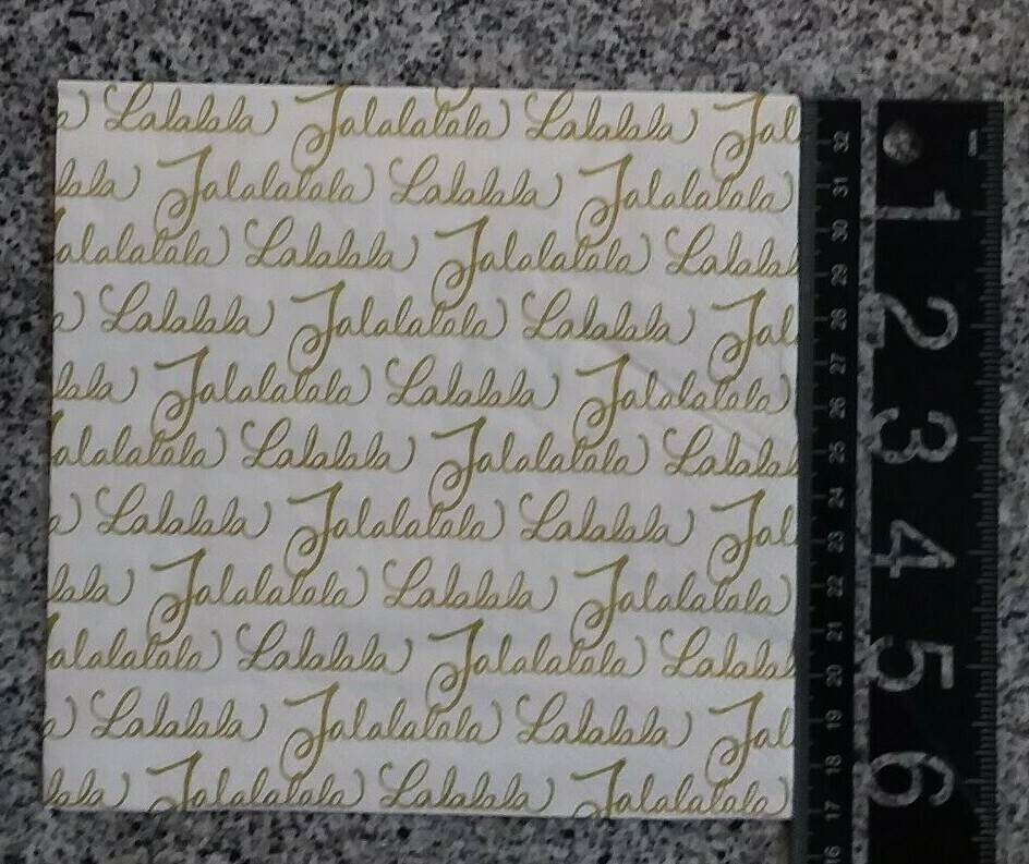 как выглядит 2 Pretty Paper Napkins Christmas "Fa Lalalala" White w/ Gold Lettering. фото