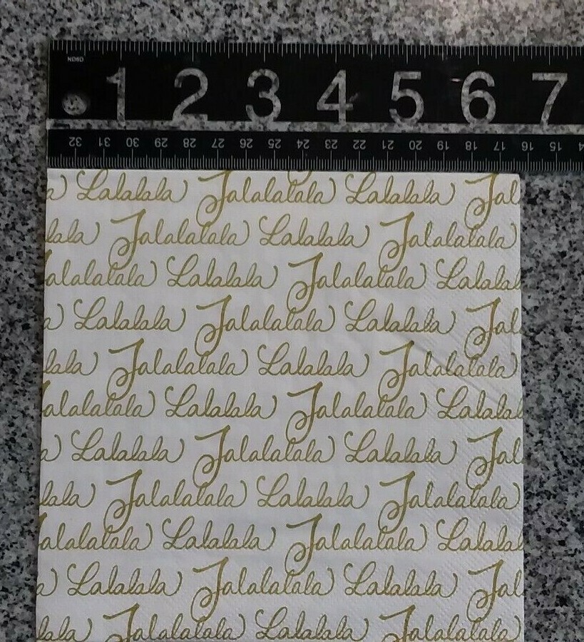 2 Pretty Paper Napkins Christmas Fa Lalalala White w/ Gold Lettering.