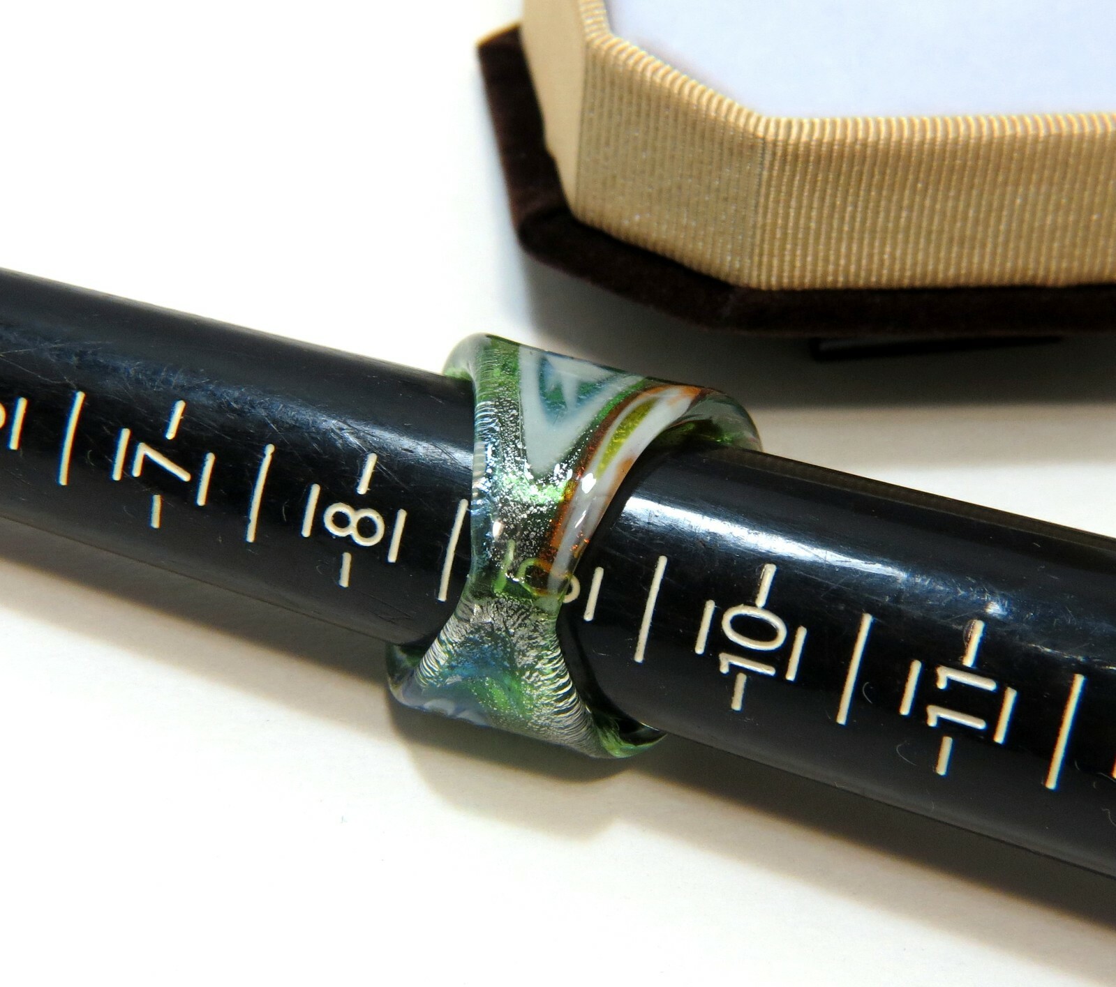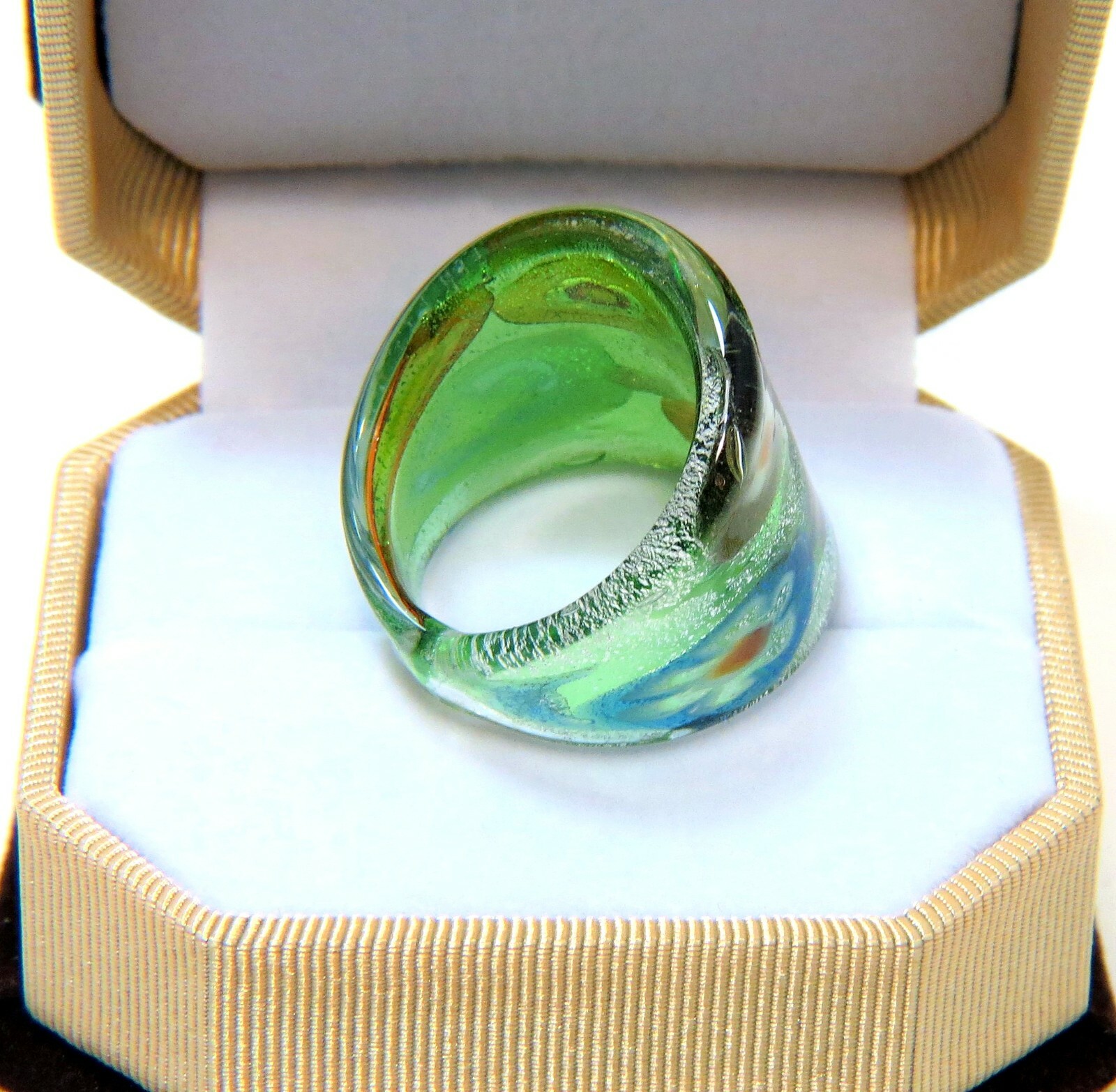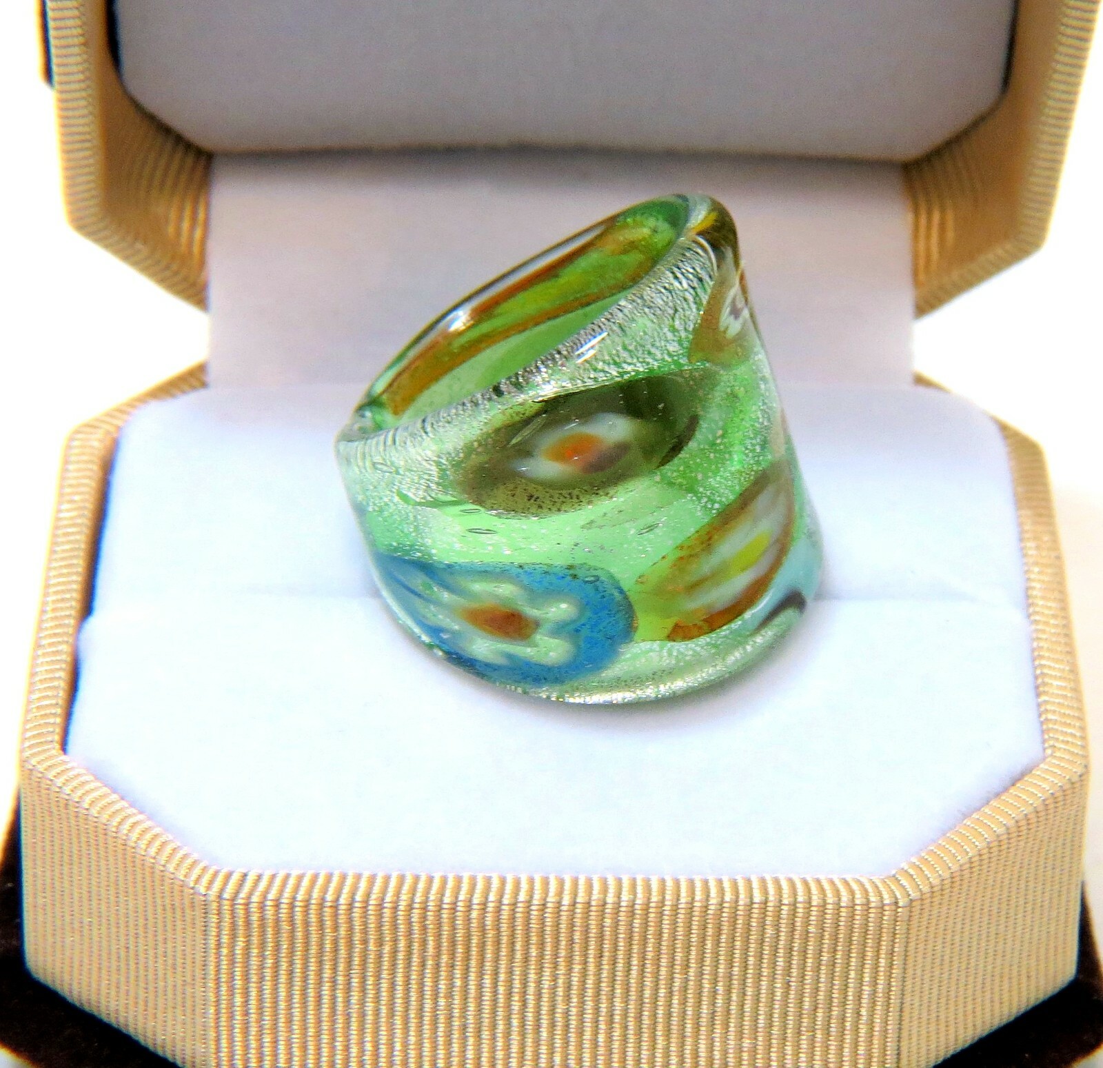 как выглядит Boho Floral Art on Green Chunky Style Hand Blown Glass Bling Ring - Size 8.75 фото