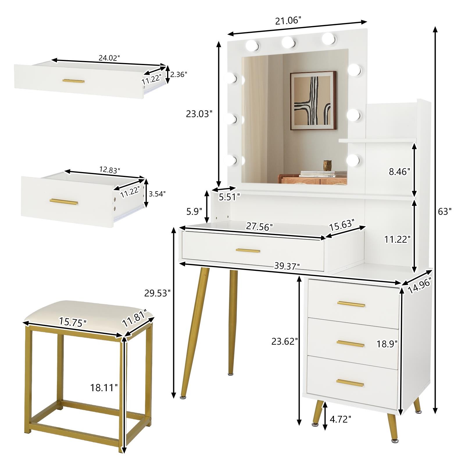 Vanity Table Set LED Lights Mirror 4 Drawer Dresser Desk Bedroom Makeup Dressing