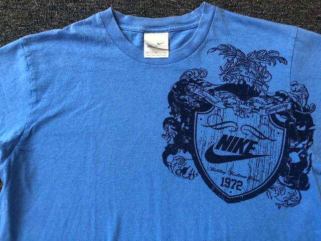 Vintage Nike Crest T Shirt Sz M Blue 90's Original Sportswear Company Gray Tag