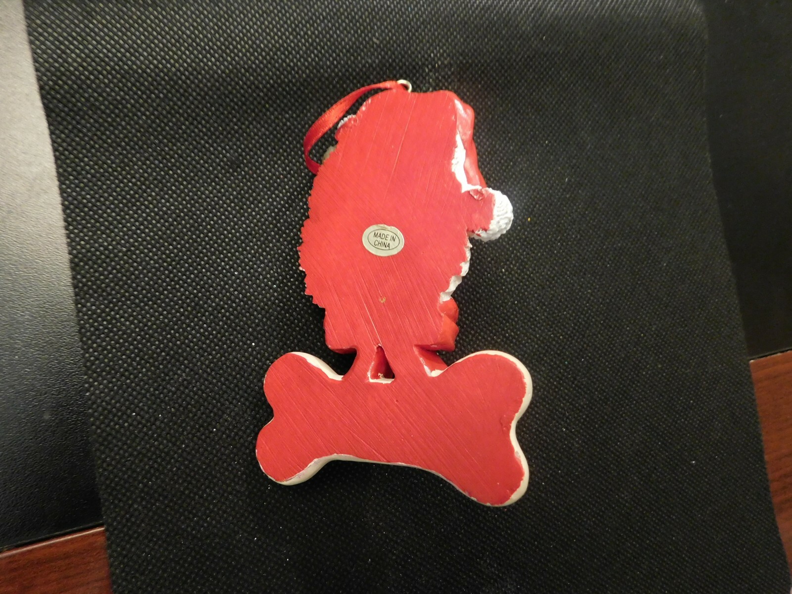 как выглядит CHRISTMAS DOG WITH RED BOW AND BELLS ORNAMENT e861DXX фото