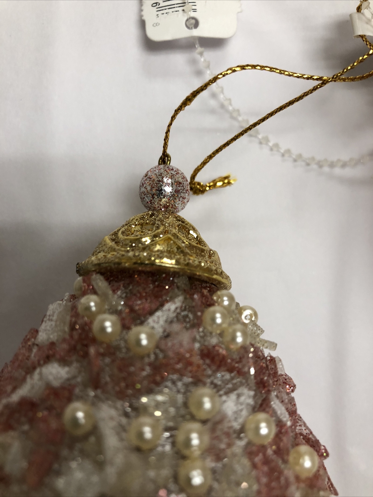 Set of 3 Katherine's Collection Pink White Gold Encrusted Ornaments 09-794698