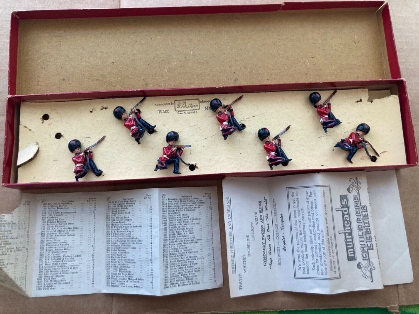 VINTAGE 7 PCS BRITAINS SOLDERS THE COLDSTREAM GUARDS 120 ORIGINAL BOX RECEIPT