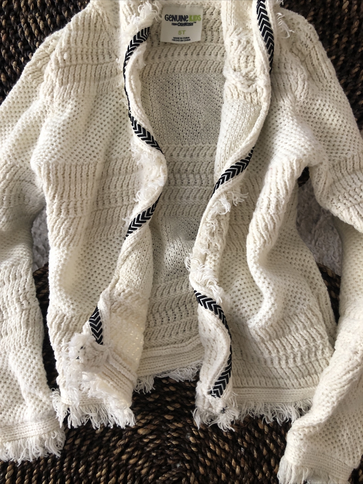 Genuine Kids From OSHKOSH Beige Open Knit Cardigan Boho Size 5T Black Detail