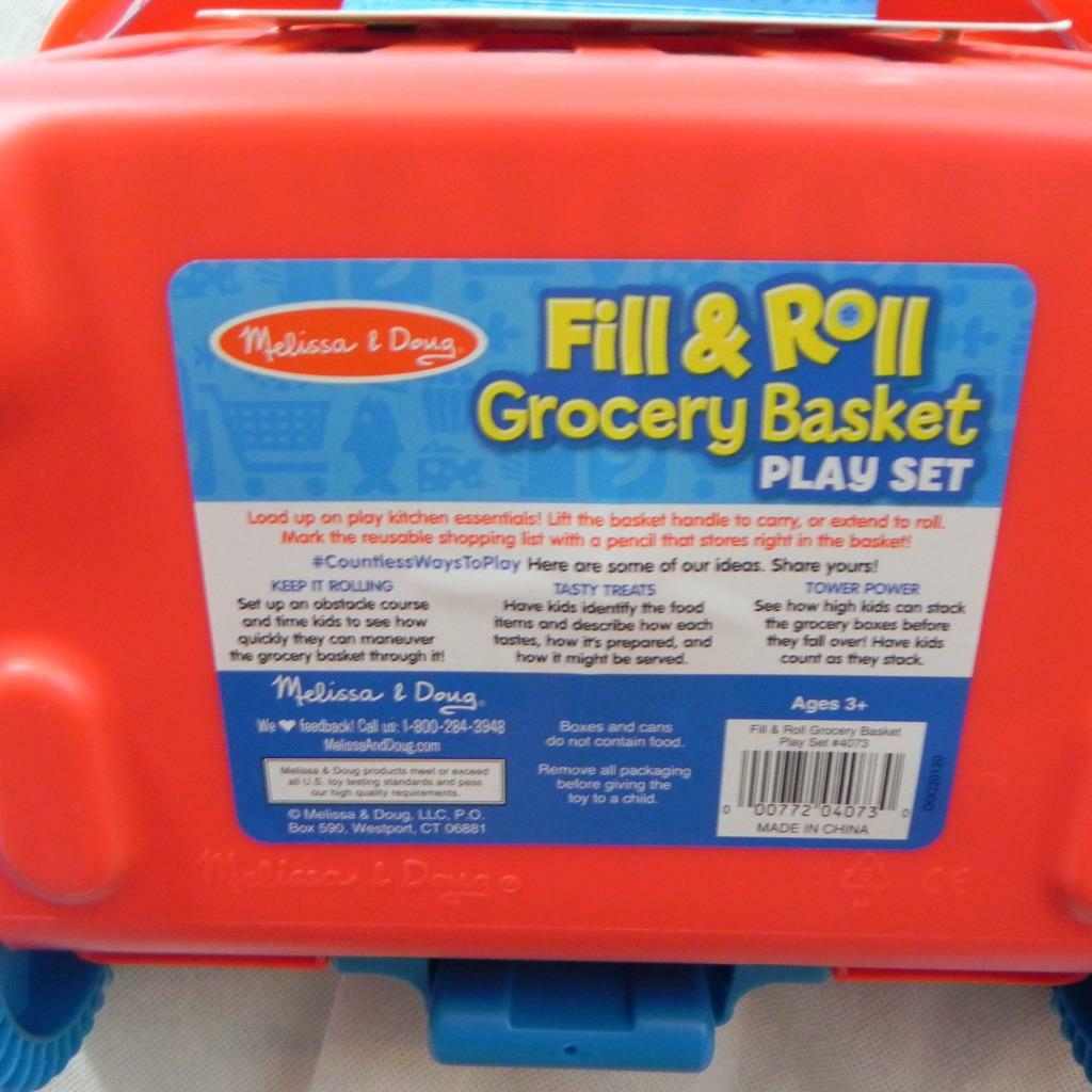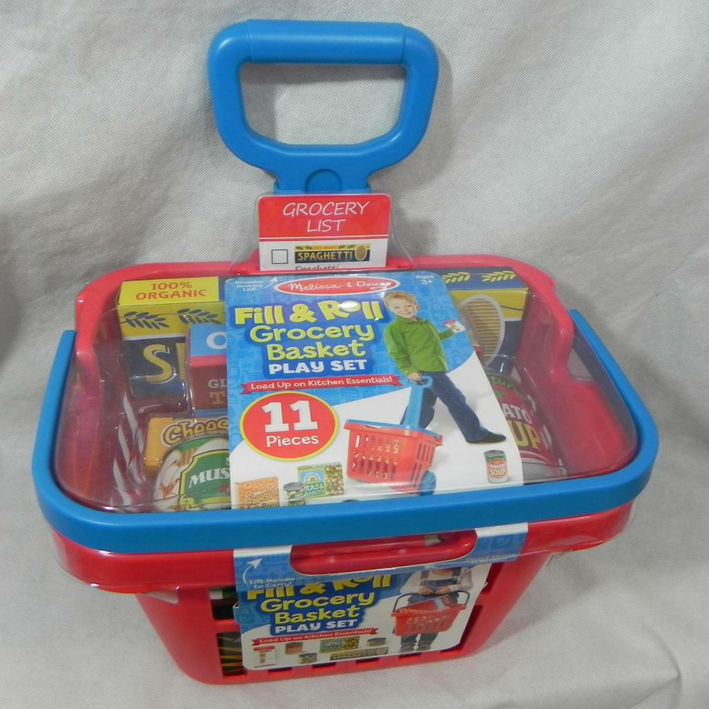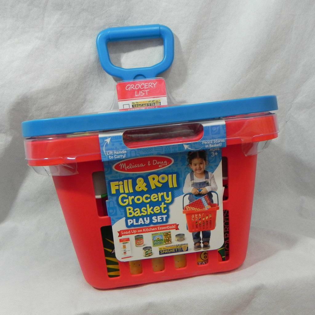 New MELISSA DOUG Fill Roll GROCERY BASKET Play Set w Pretend Grocerys Food