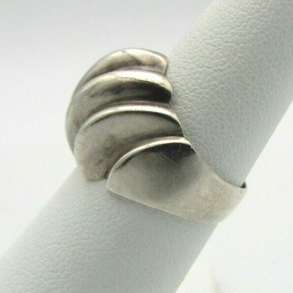 Classic 925 Sterling Silver Ribbed Dome Ring Sz 5 1/2 - 4.4 grams