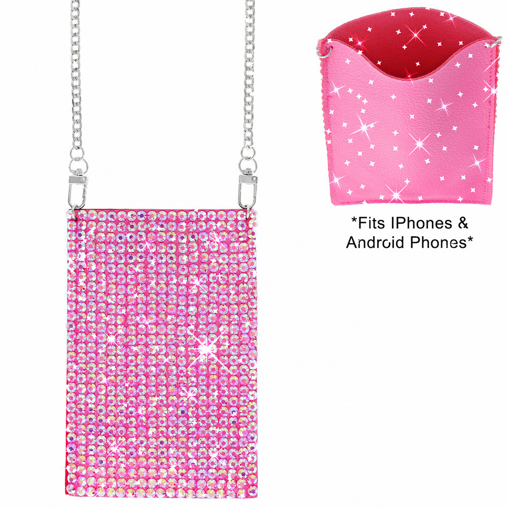 CROSSBODY TELEPHONE SPARKING RHINESTONE CROSSBODY CELL PHONE BAG WITH CHAIN