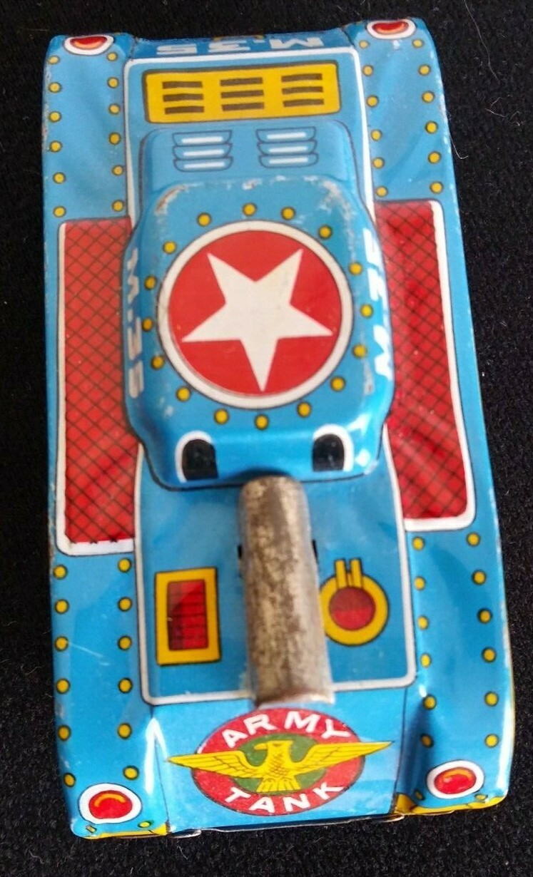 TIN LITHO FRICTION M.35 2500 ARMY TANK PAT.P MADE IN JAPAN. BLUE,RED,YELLOW