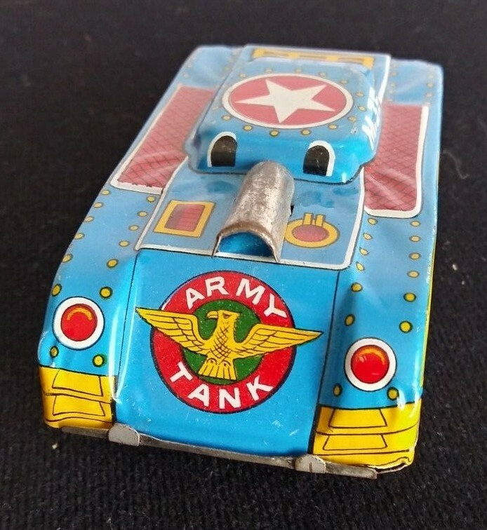 как выглядит TIN LITHO FRICTION M.35 2500 ARMY TANK PAT.P MADE IN JAPAN. BLUE,RED,YELLOW фото