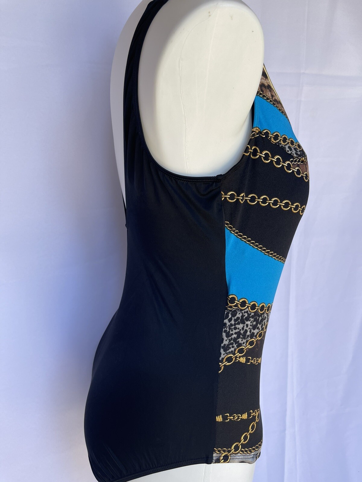 Robby Len NWT One Piece Swimsuit Wrap Front Scoop Back Women's Size 12 Multicol