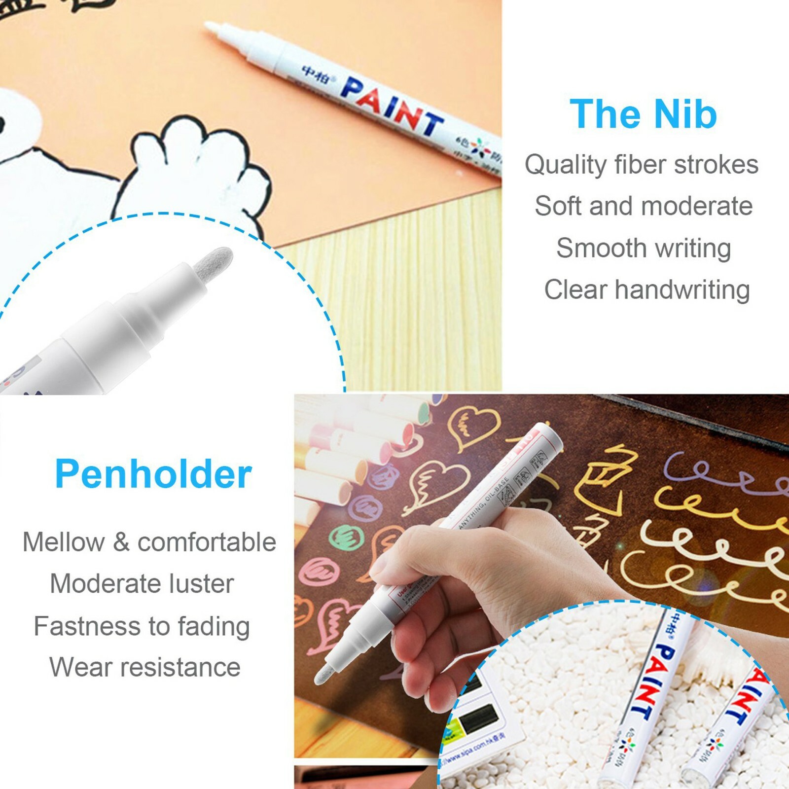 6PC White Paint Pen Marker Waterproof Permanent Car Tire Lettering Rubber Letter