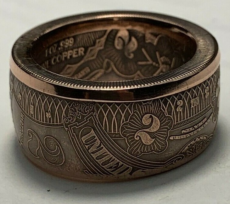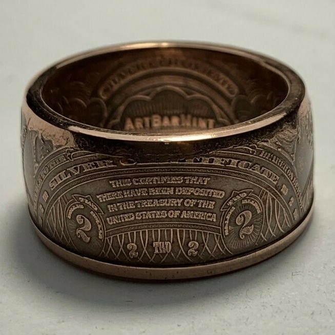 как выглядит Coin Ring - 2 Dollar Silver Certificate Copper Ring - Good Luck Ring фото
