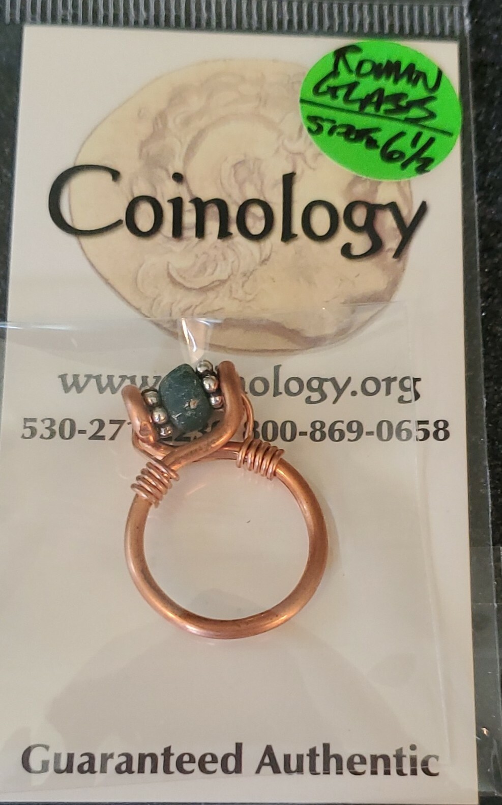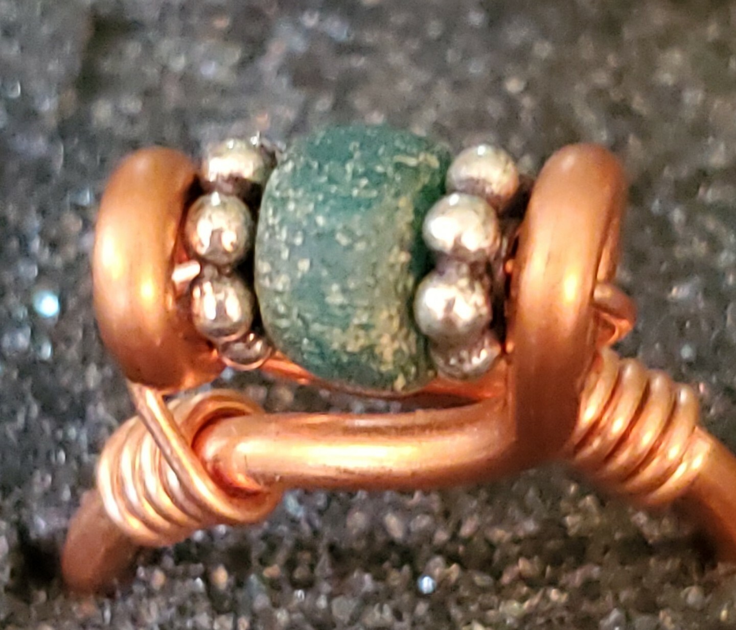 Psychometry REAL ANCIENT ROMAN glass bead COPPER PALEO RING sz 6.5 HANDCRAFTED