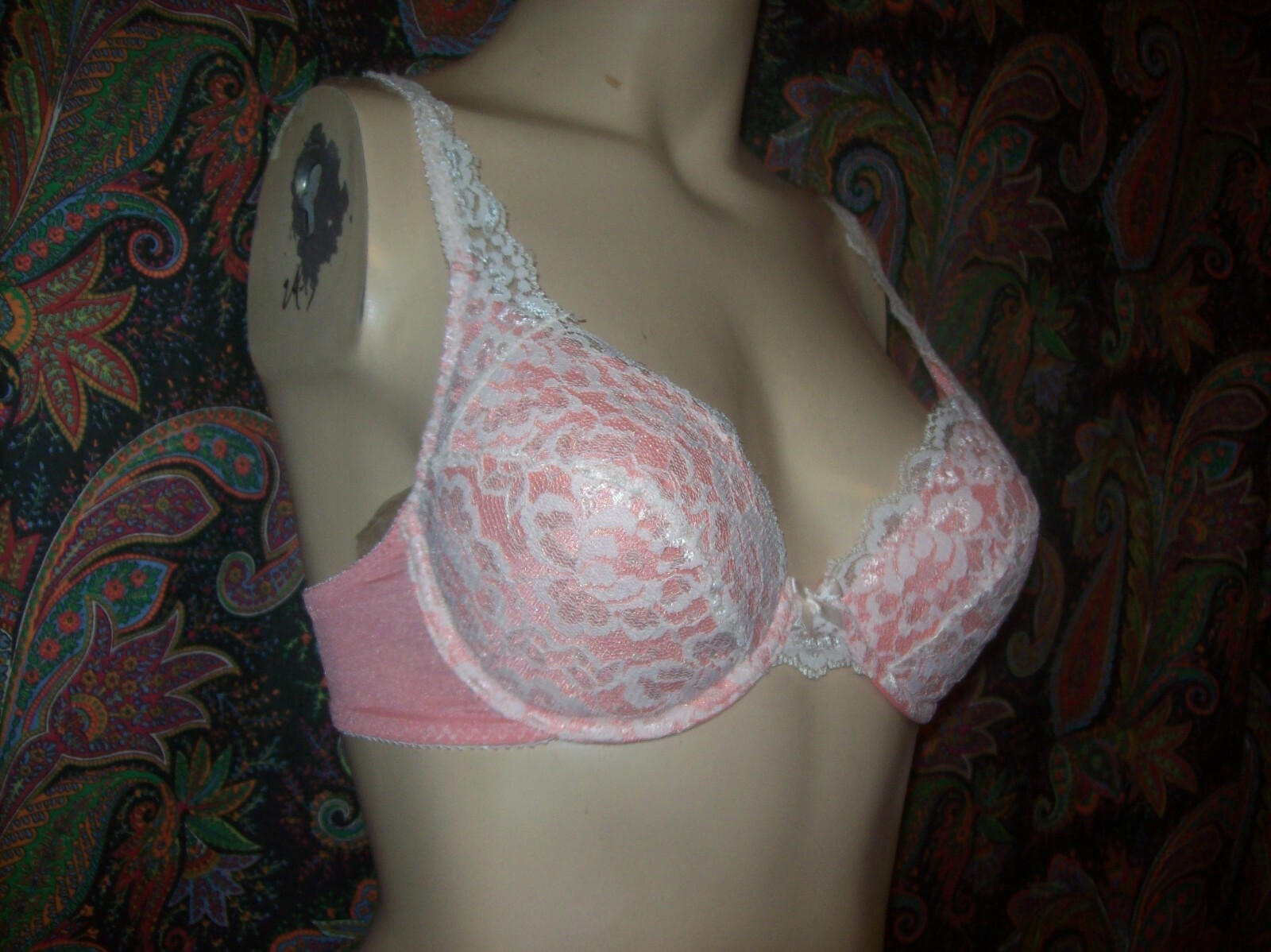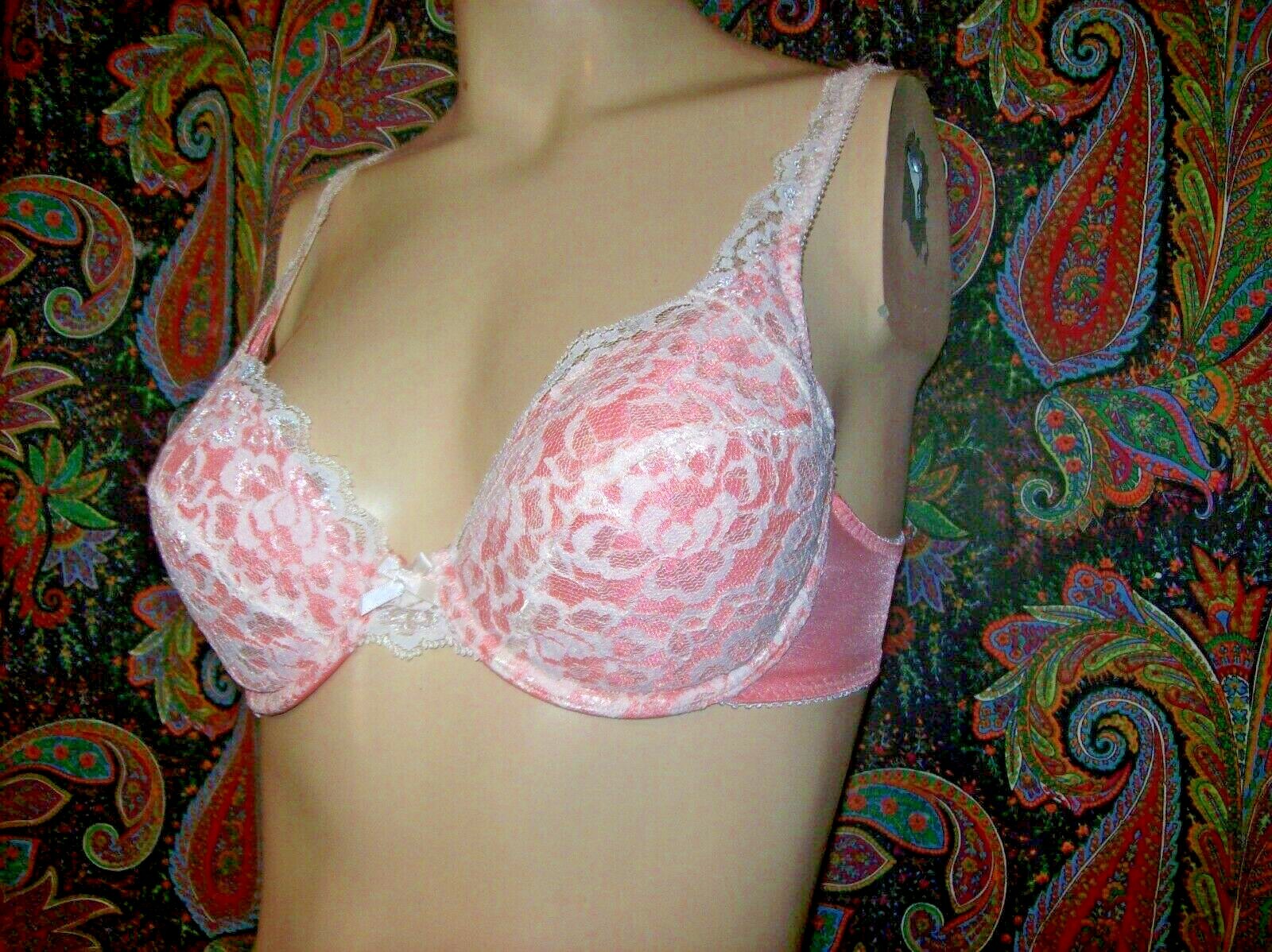 как выглядит Vintage Coral 2-Tone Add-A-Size Lacy Padded Push-up Bra 34A фото